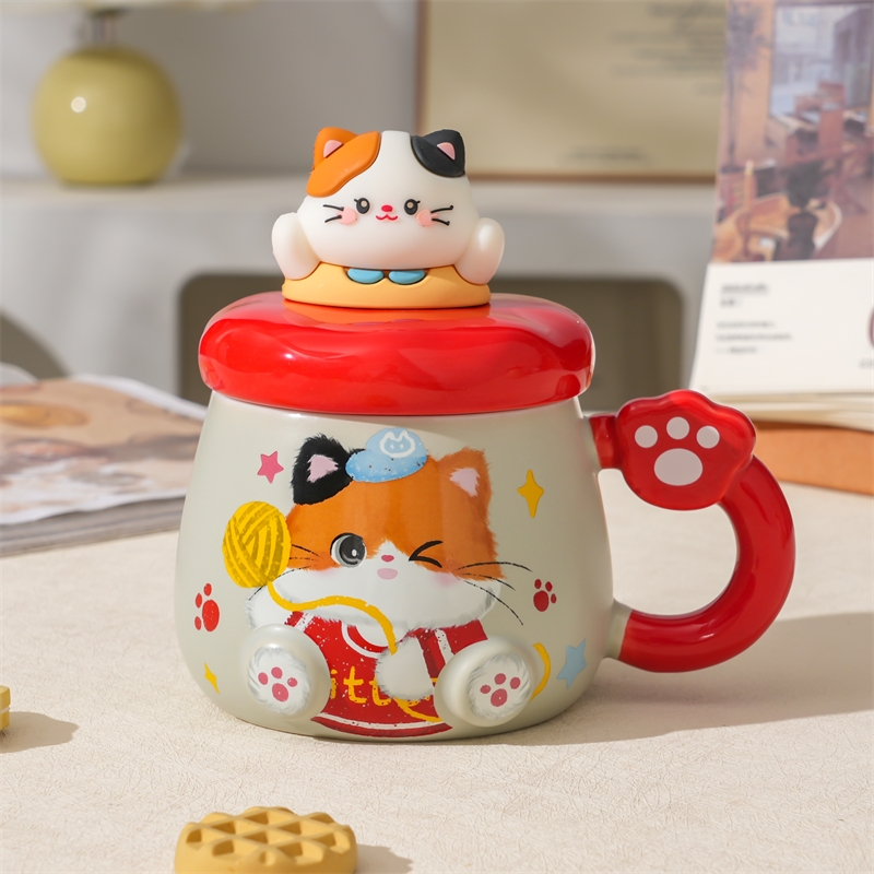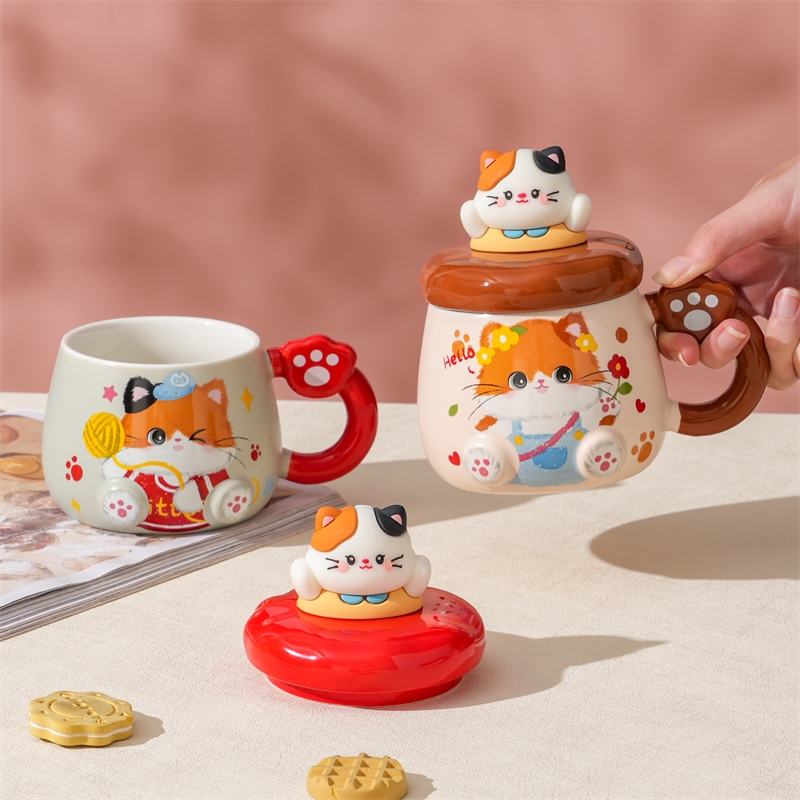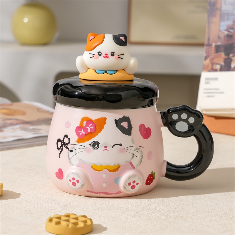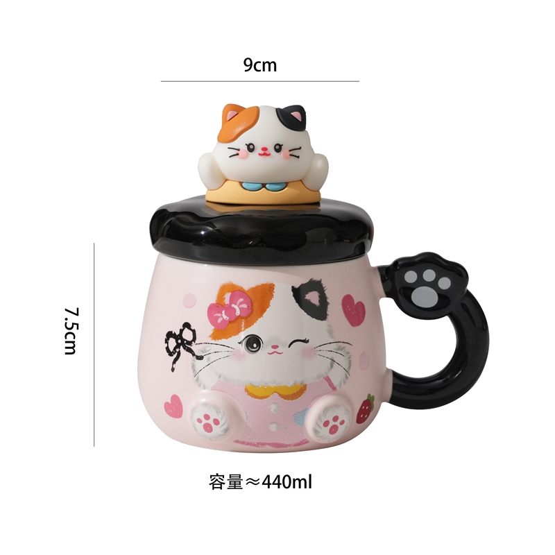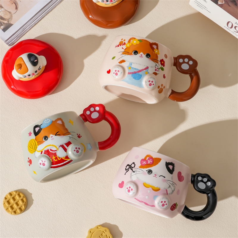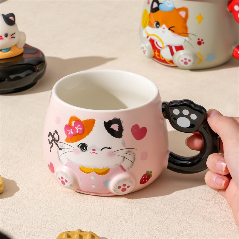 淘气梦喵猫咪图案;高温烧制,浮雕造型;含盖