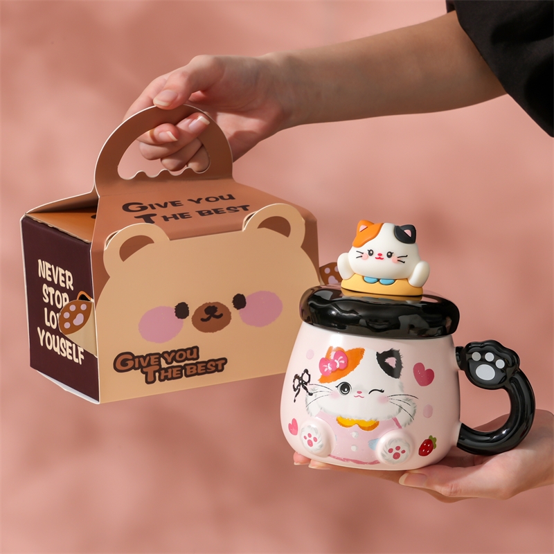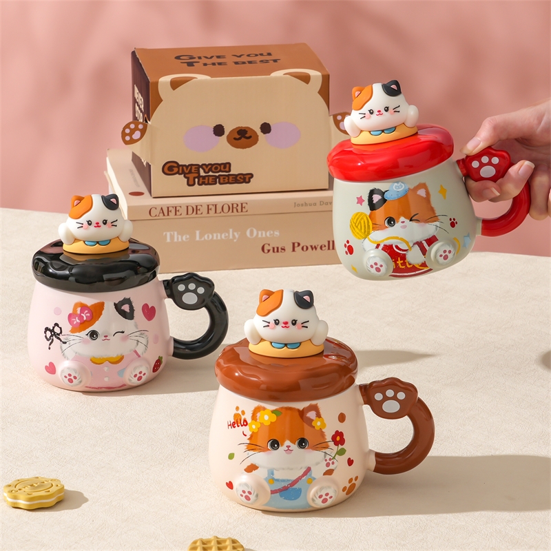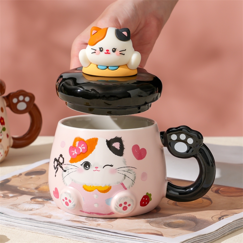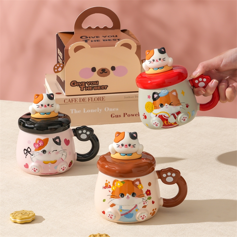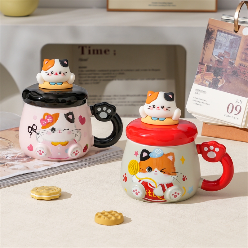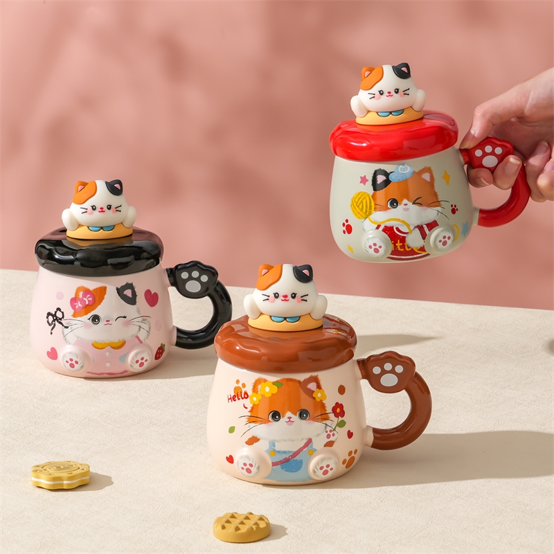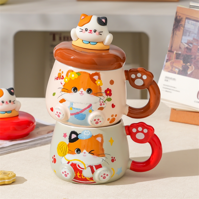 淘气梦喵猫咪图案;高温烧制,浮雕造型;含盖