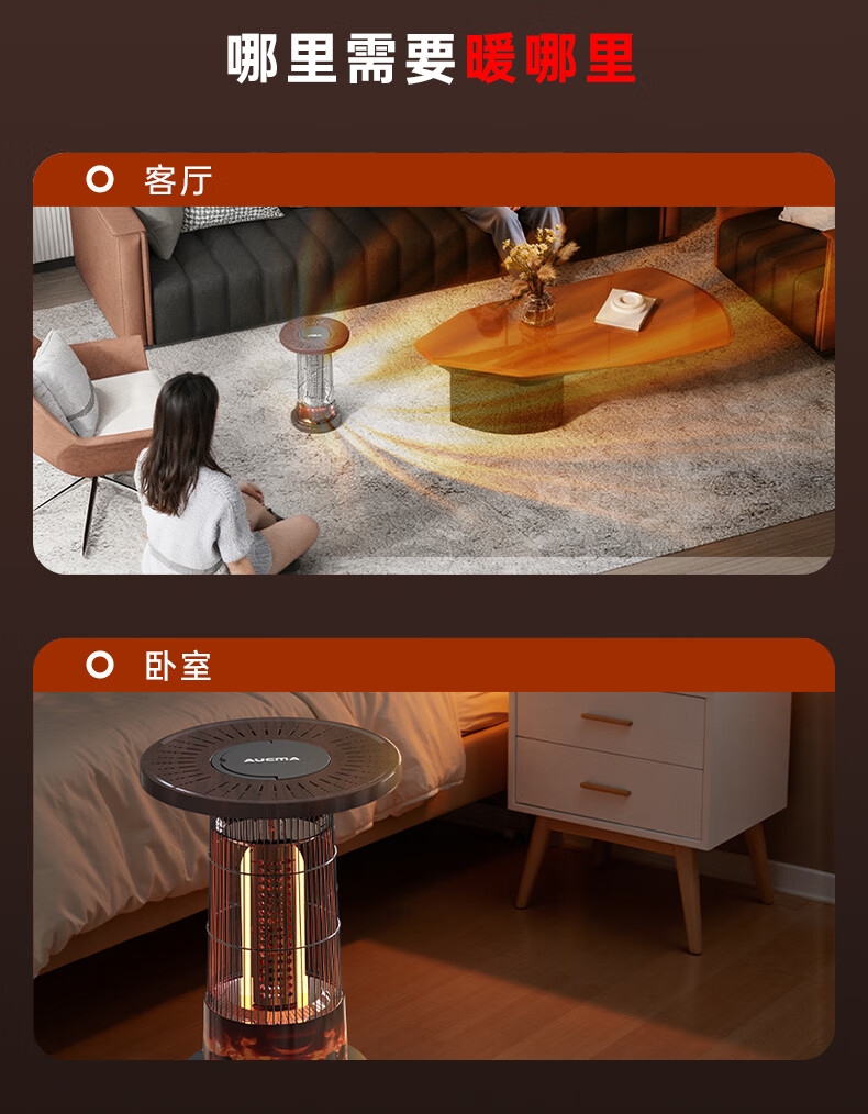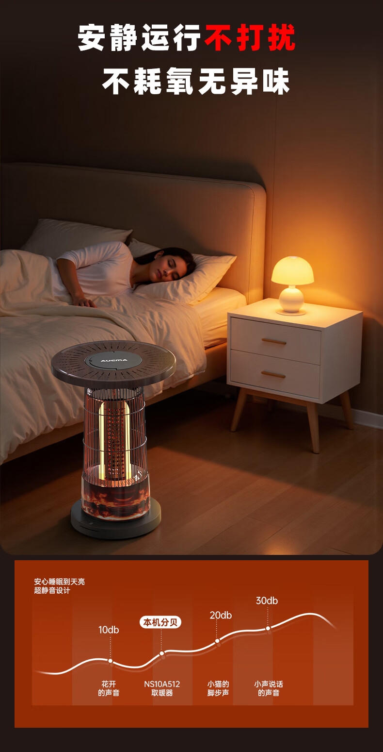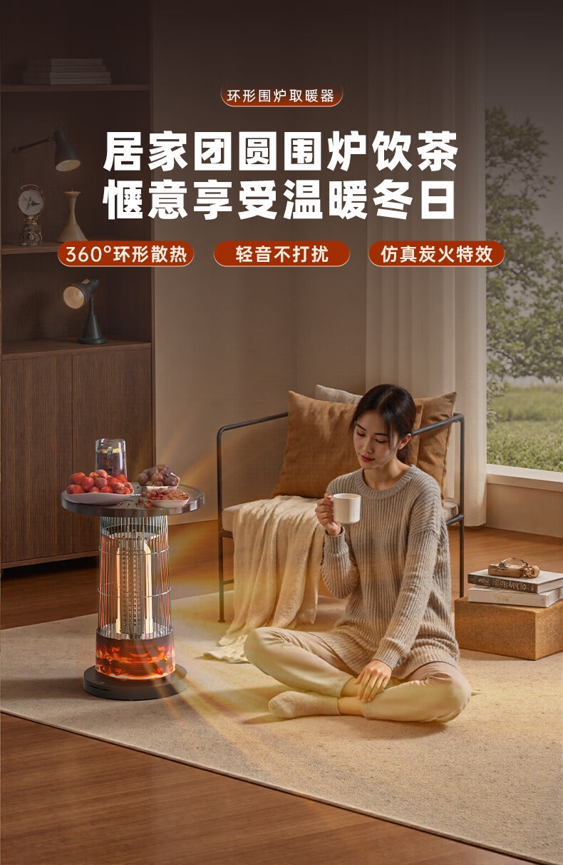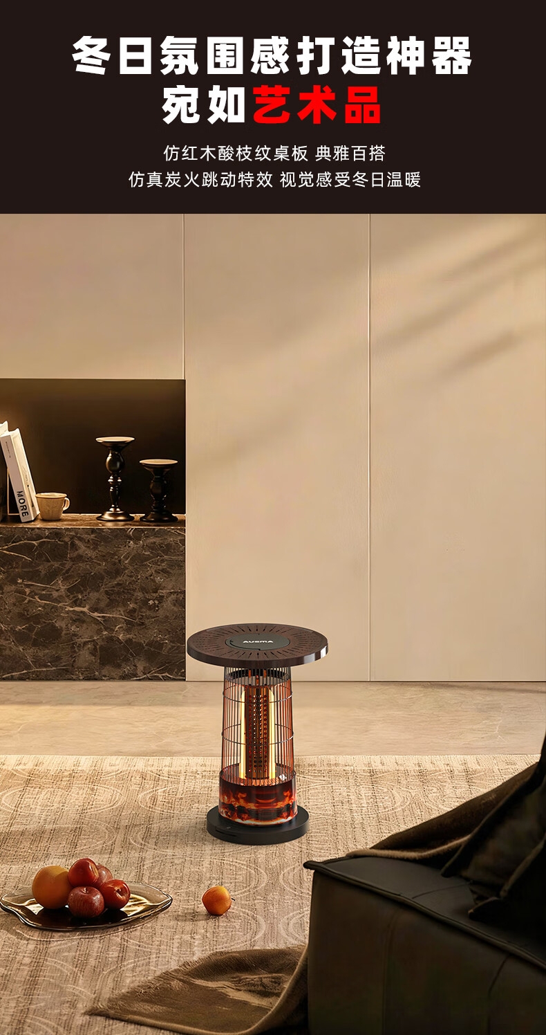 仿红木酸枝纹桌板仿真炭火跳跃特效,视觉感受冬日温暖;便携提手,机身小重量,随时随地暖意相伴;脚踏控制开关,无需弯腰更方便;上下左右暖全身,360度全方位散热;便携提手,机身小重量,随时随地暖意相伴