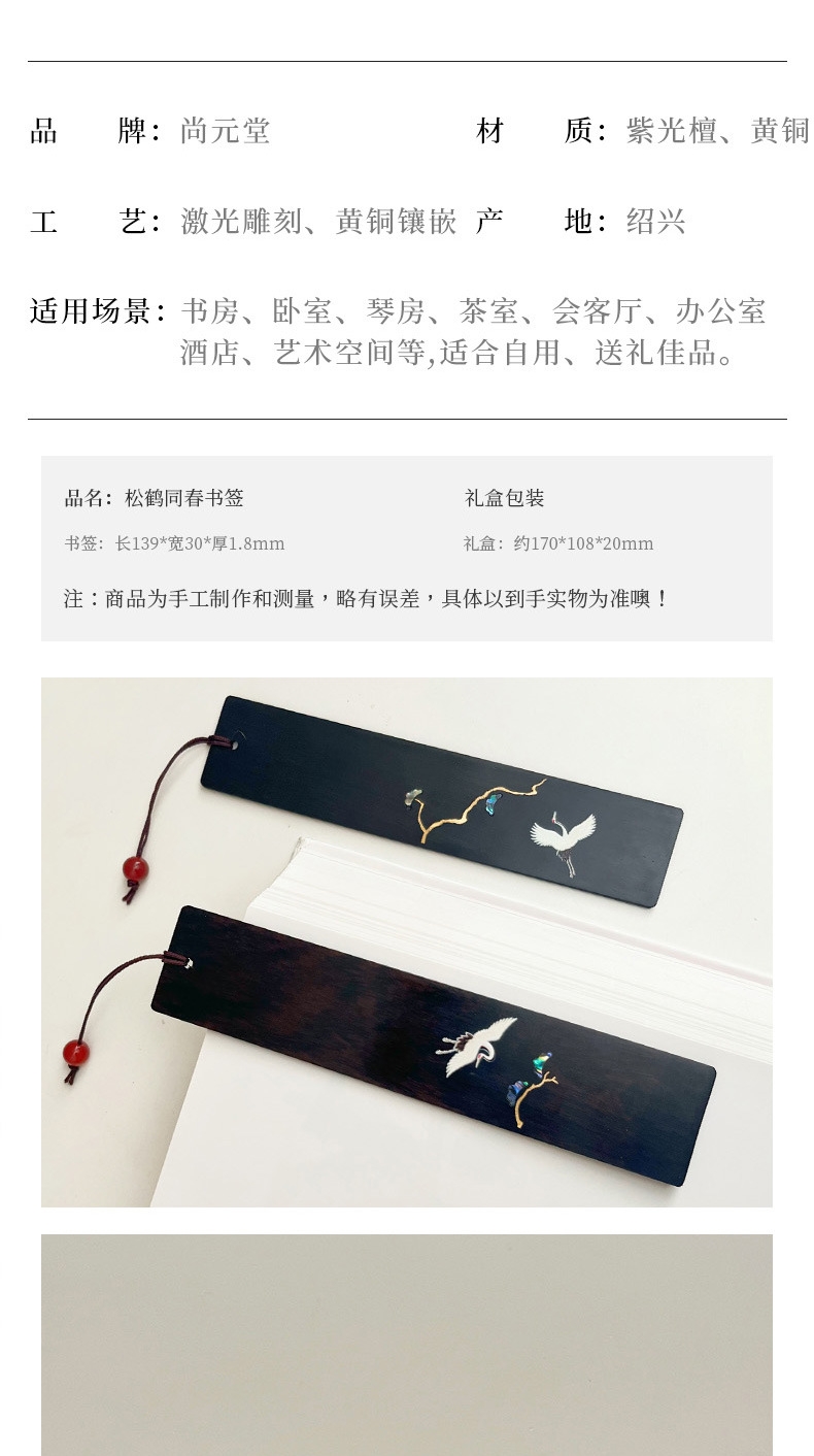 尚元堂 中国风松鹤同春木质书签2件套JXW202