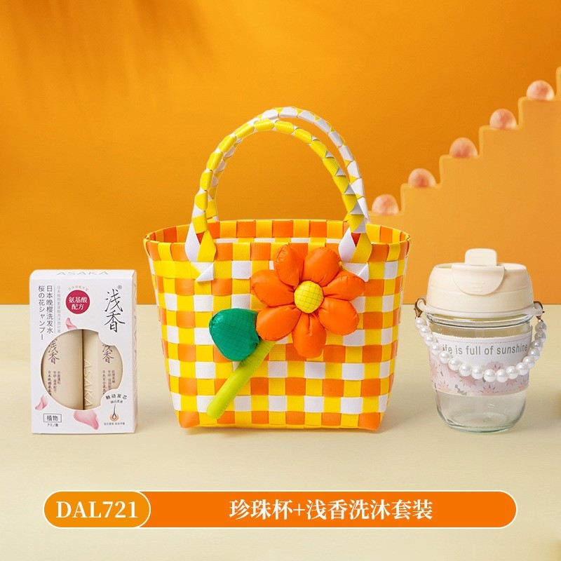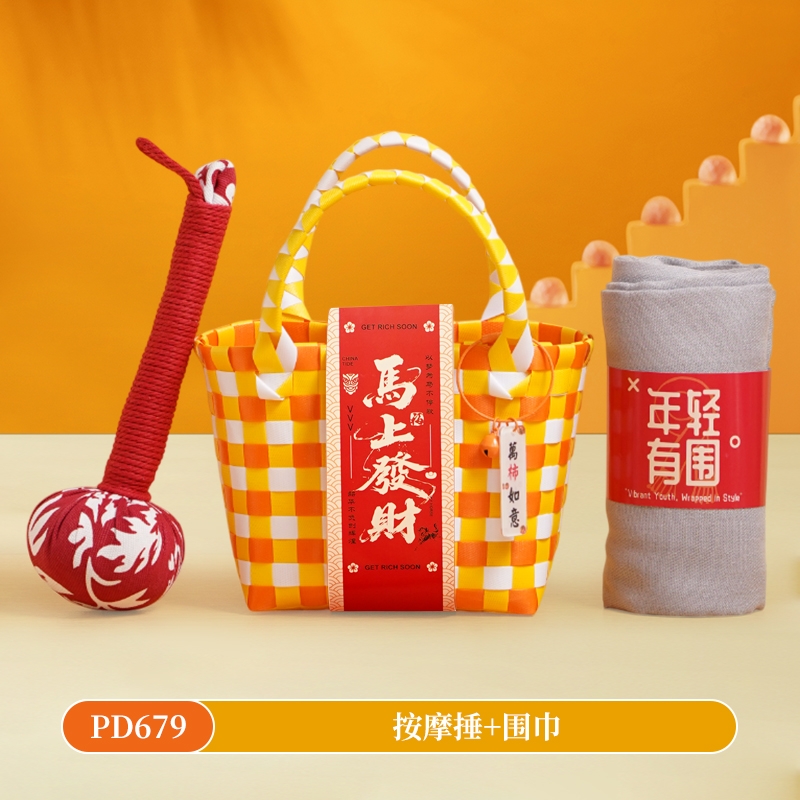 甜蜜点 编织筐手提蓝暖冬围巾按摩捶套装
