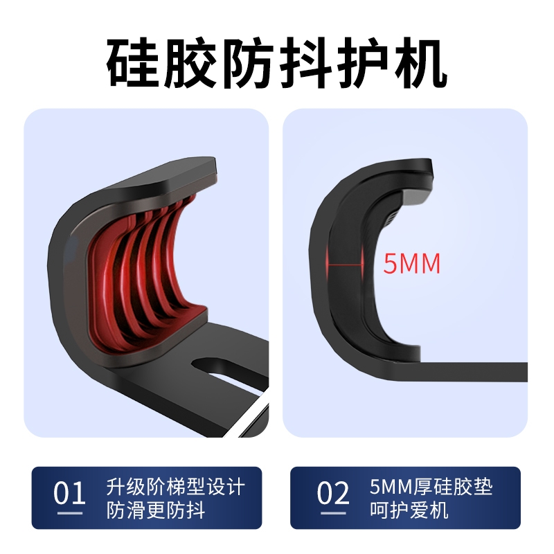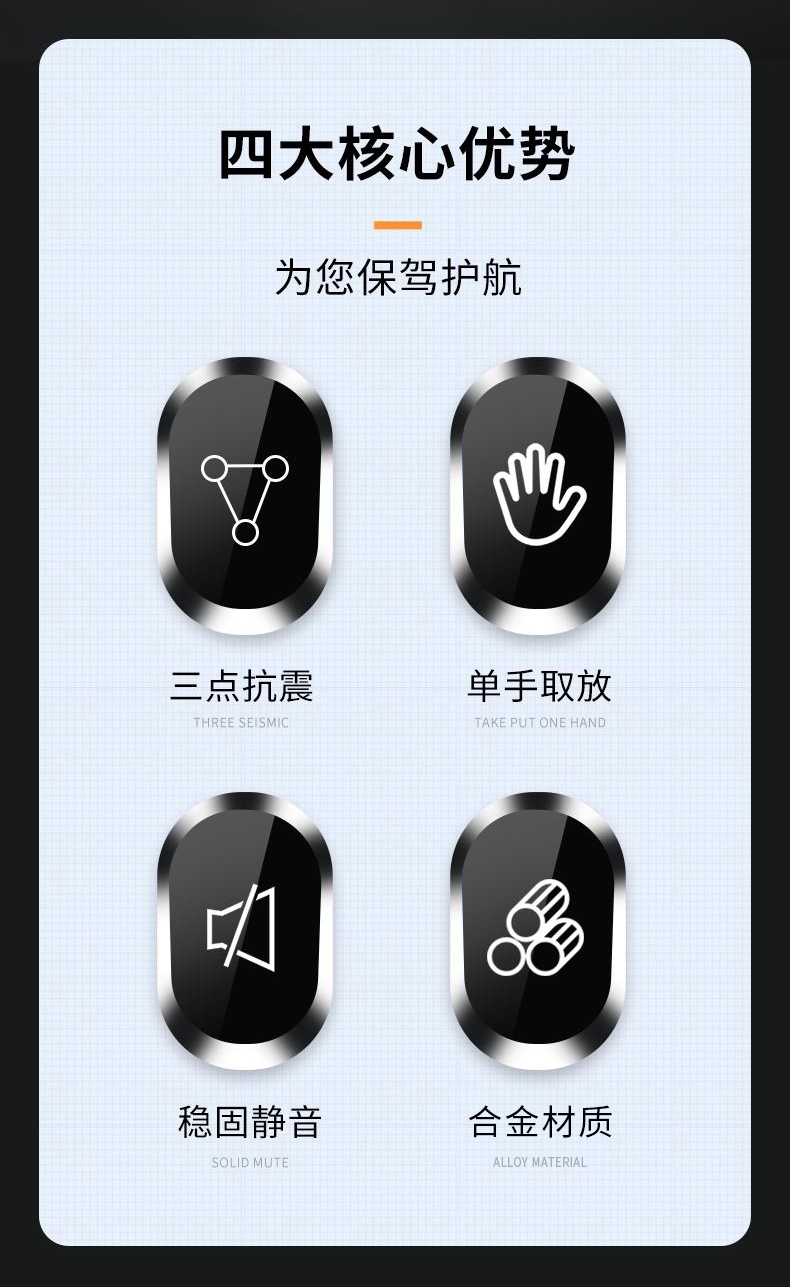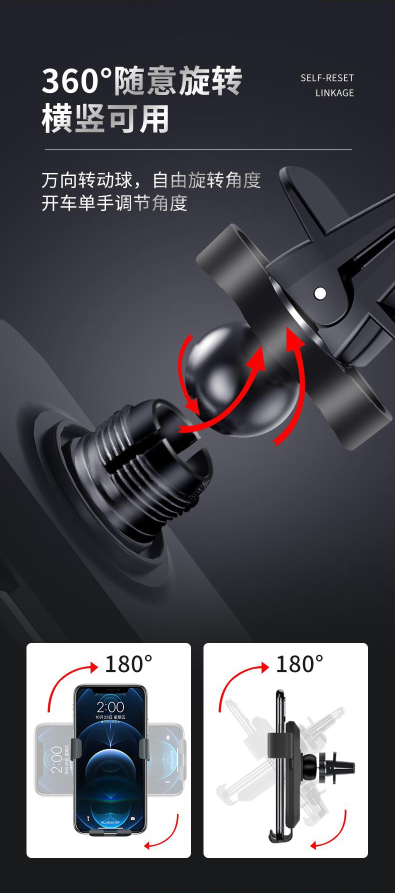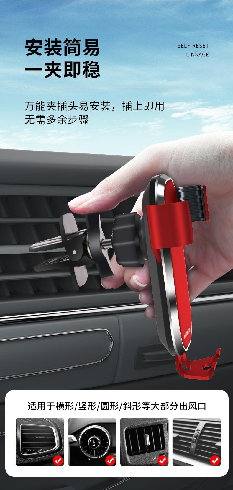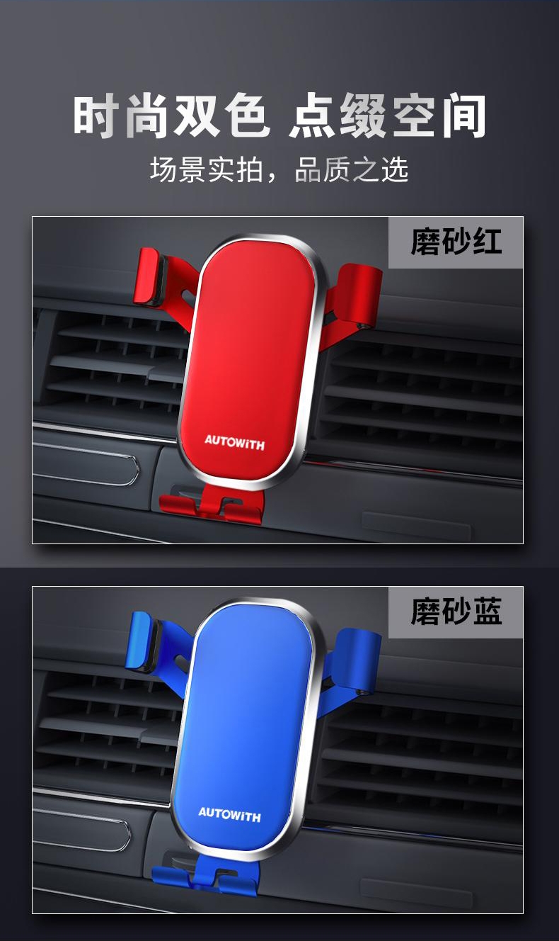 固定及承托角采用加厚 硅胶软垫,不伤手机;采用重力感应技术,手机放入即锁紧,拿开就松;配备旋钮式出风口固定卡扣,比常规出风口卡扣更加稳固