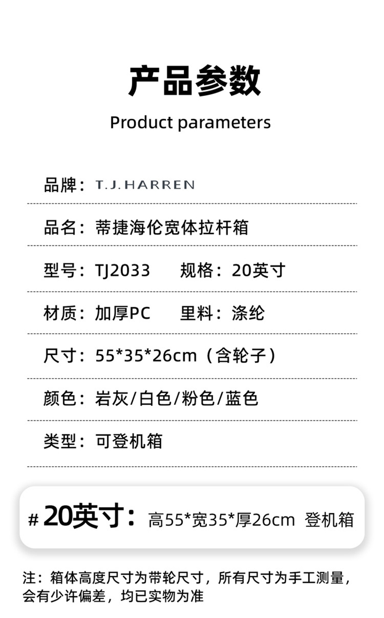 T.J.HARREN 蒂捷海伦宽体拉杆箱20英寸TJ2033
