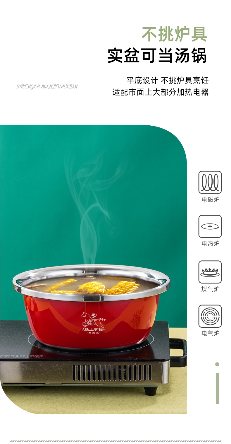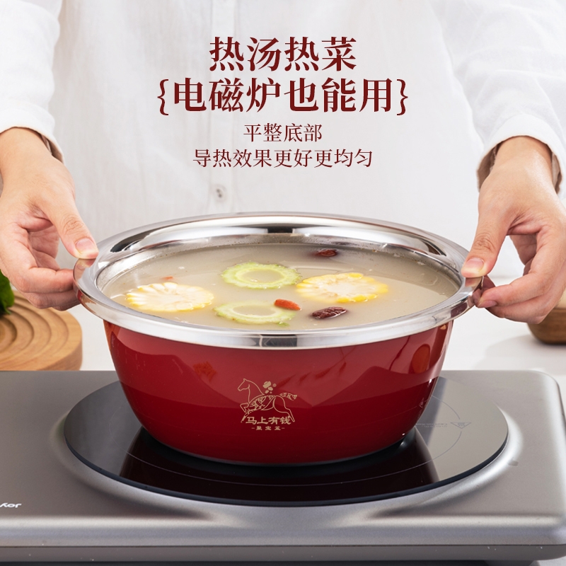 送礼送聚宝盆,美好寓意,广纳八方财富,汇聚四方鸿运;加厚盆,宽边设计方便端拿,精抛工艺,清洗方便。;马上有钱,助力开门红,品牌宣传必备礼品
