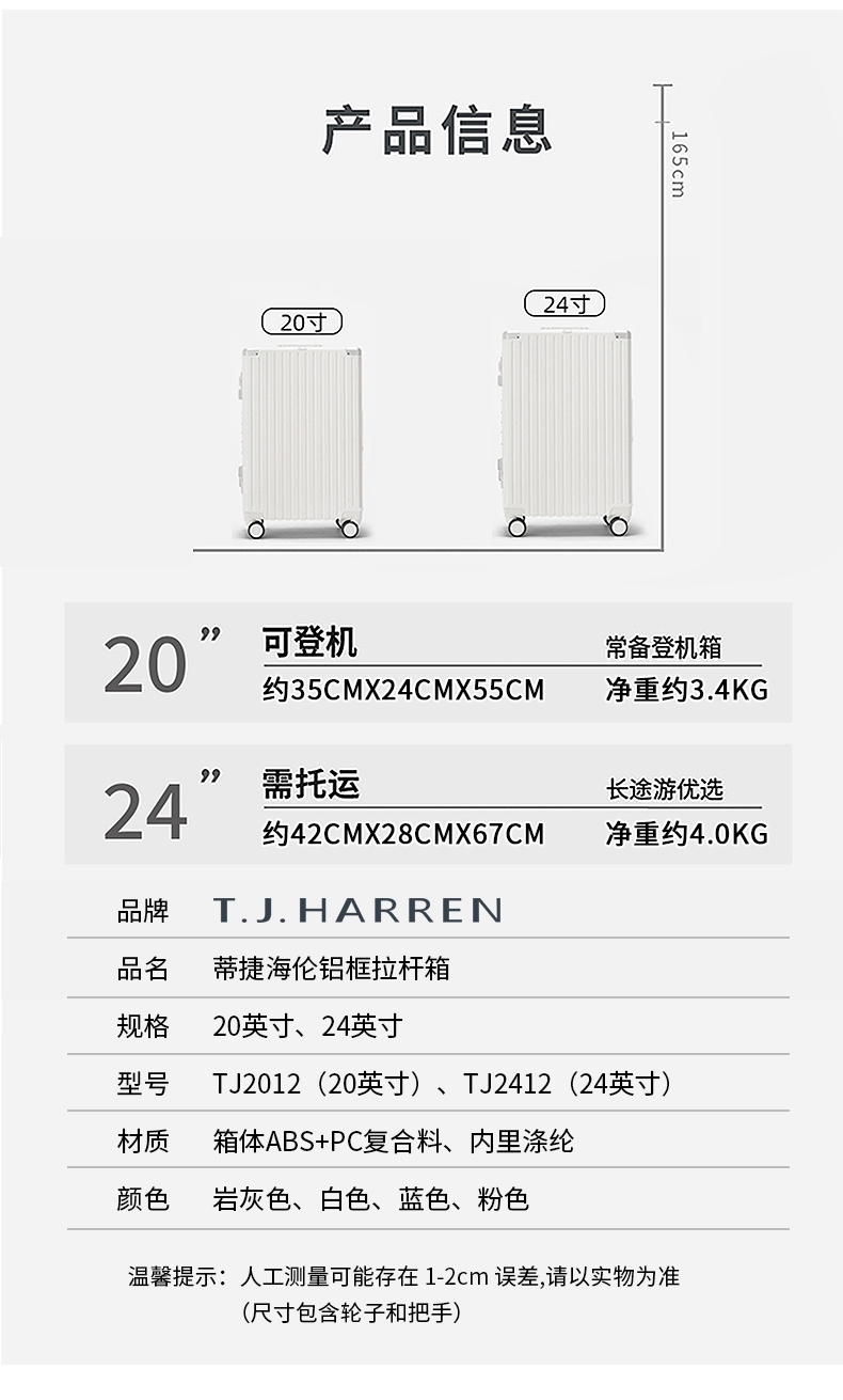T.J.HARREN 蒂捷海伦铝框拉杆箱20英寸TJ2012