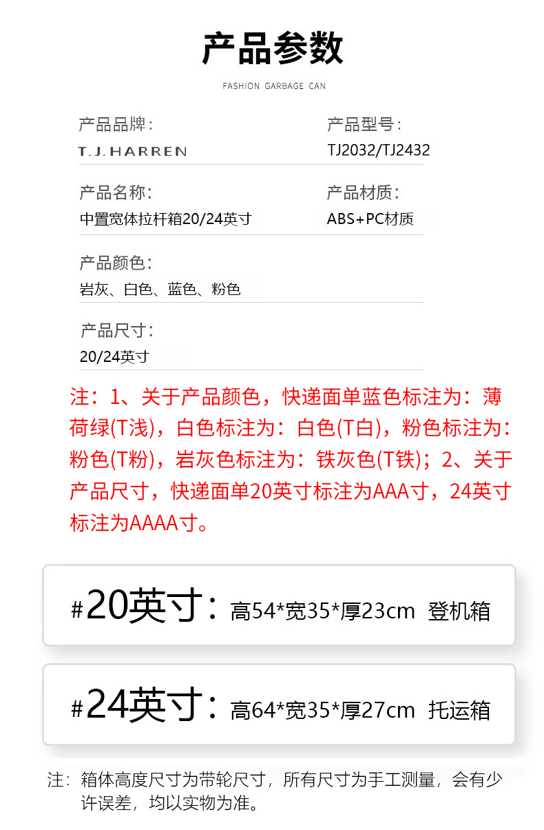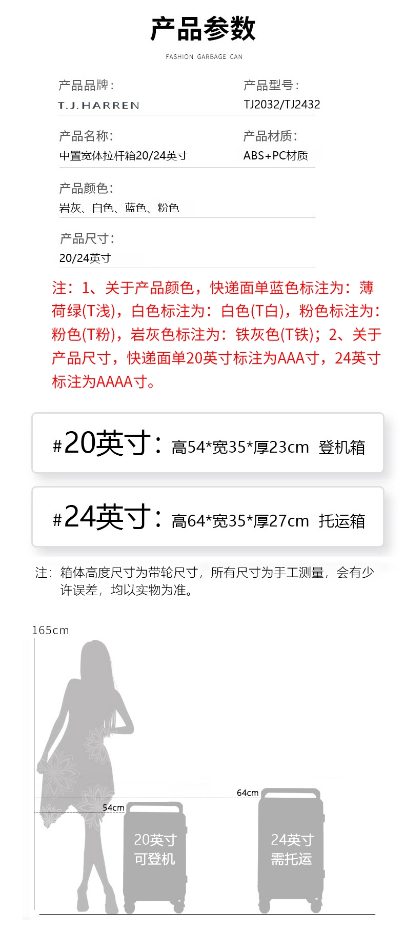 T.J.HARREN 蒂捷海伦中置宽体拉杆箱20英寸TJ2032