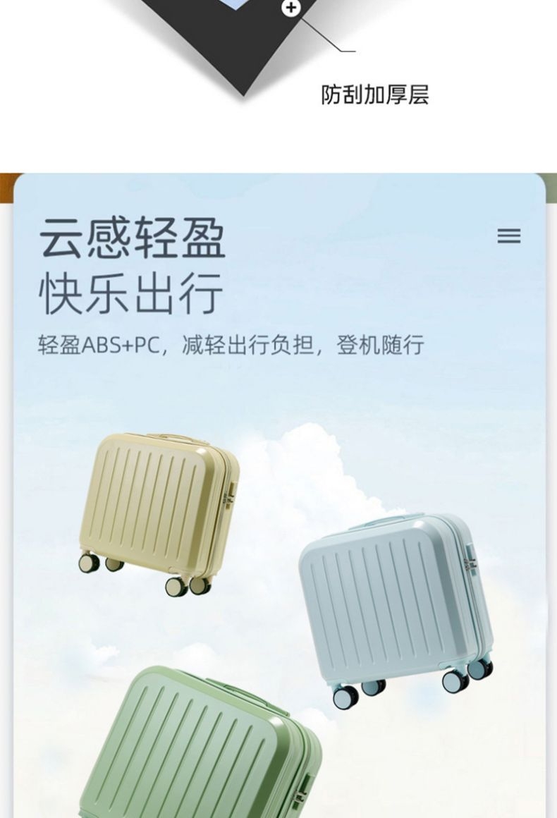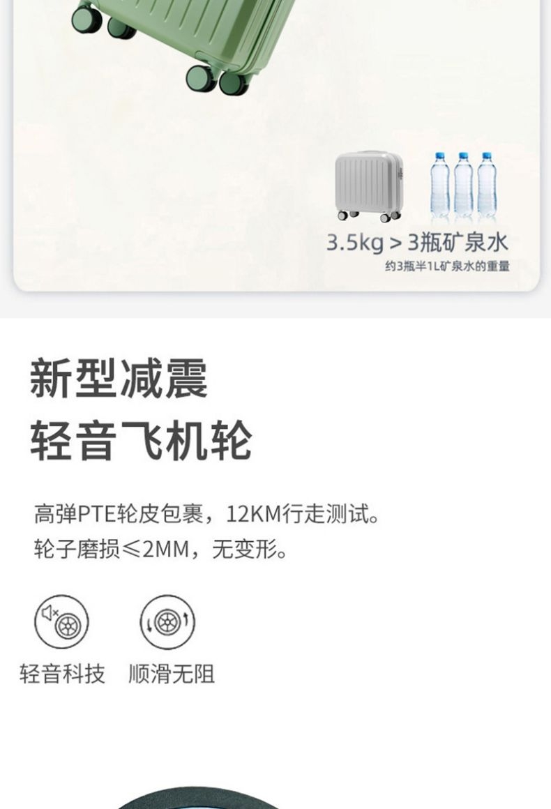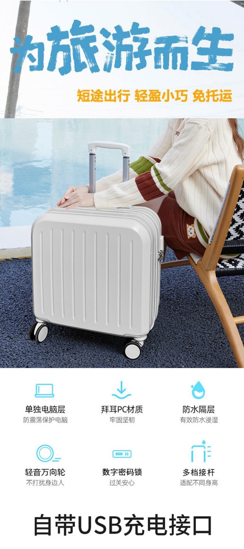 带杯架和USB充电接口,出行更便捷;耐用合金拉杆,舒适手提,坚固顺滑;三码安全密码锁,一路旅途安全放心;防刮花坚固耐磨箱体,无惧旅途颠簸;
