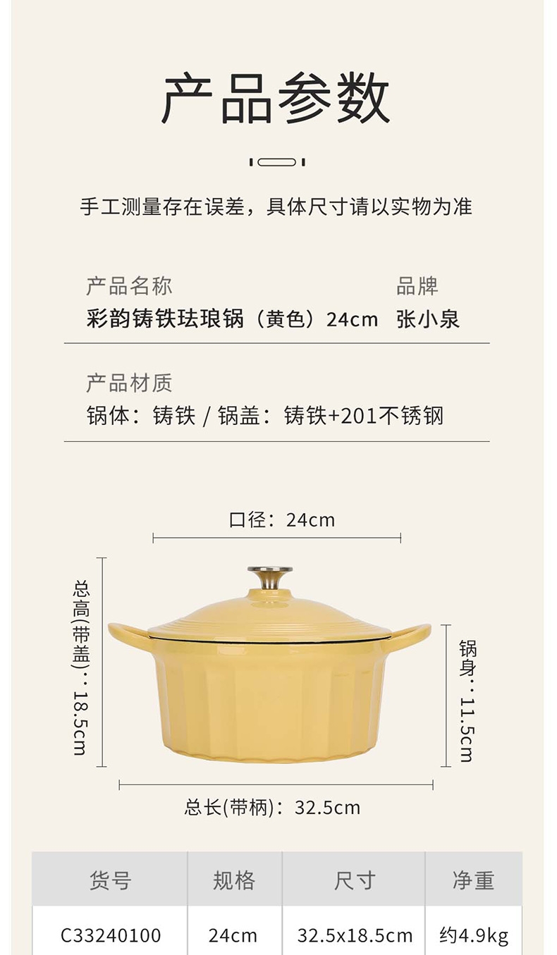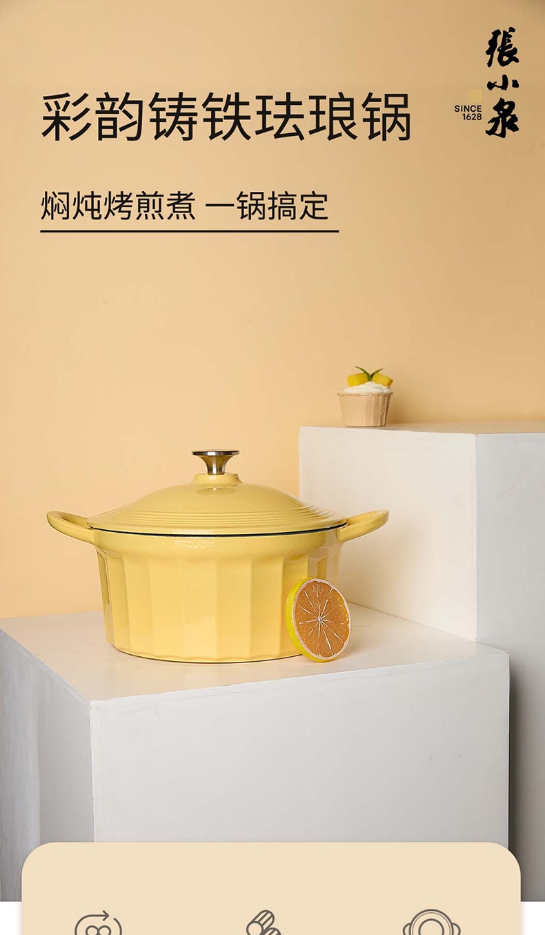 张小泉 彩韵铸铁珐琅锅黄色C33240100