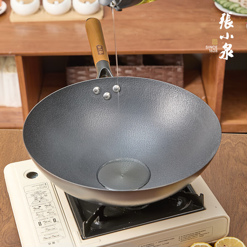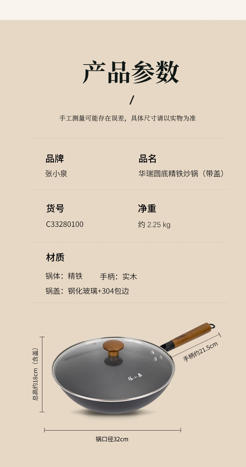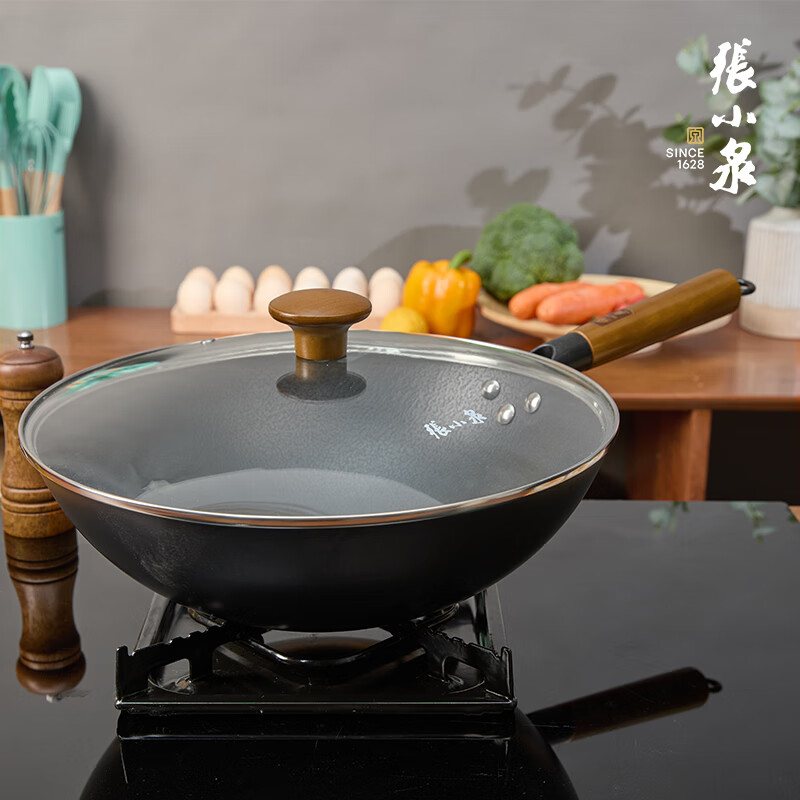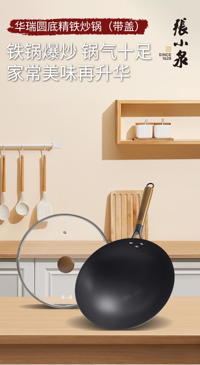 张小泉 华瑞圆底精铁炒锅带盖C33280100