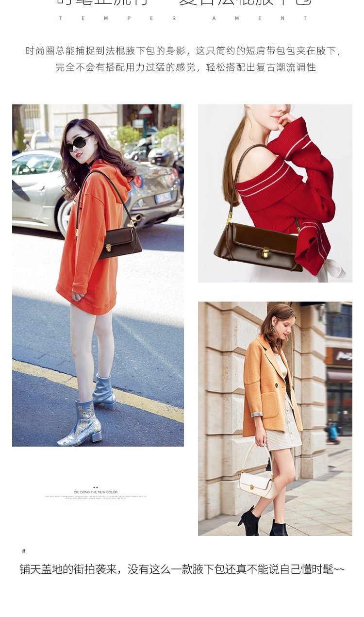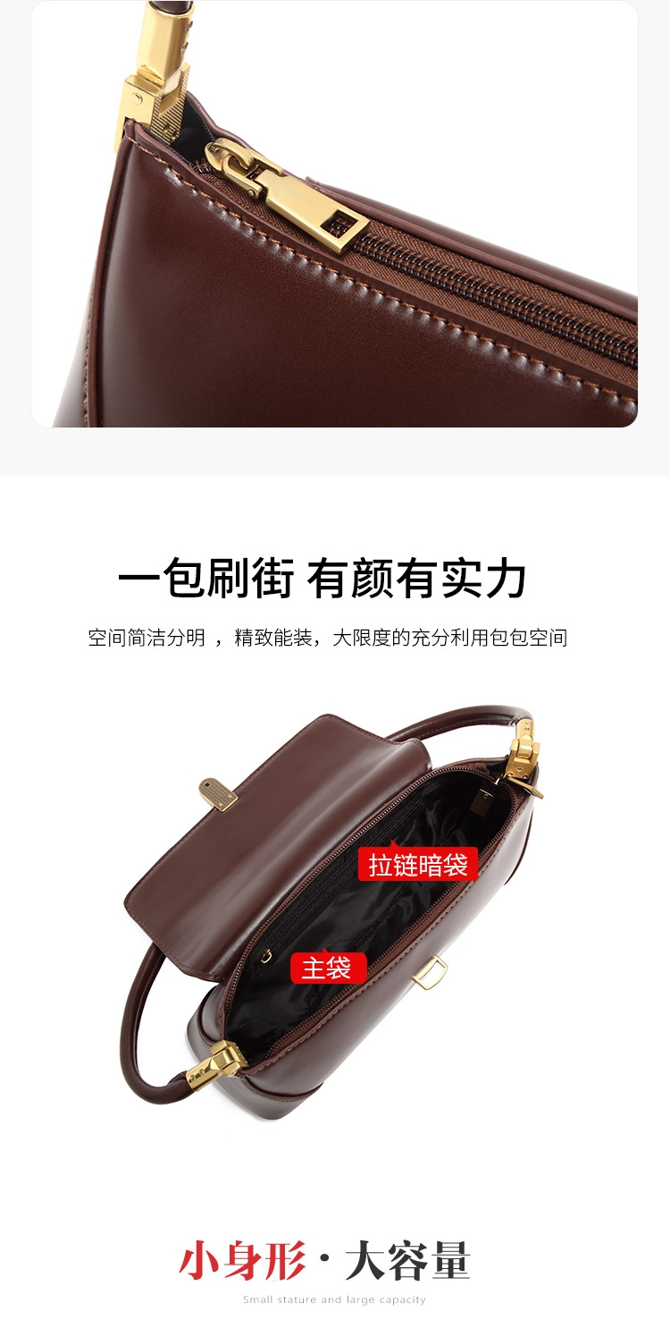 纯正复古法式女包,二代升级优雅款;加粗舒适柔韧手提,可手提的腋下包;锁扣防盗,防磨底钉,定制质感拉链;主袋加内贴袋,实用收纳,有容乃大