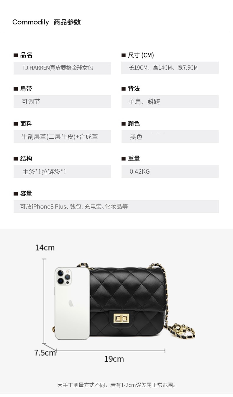 T.J.HARREN 蒂捷海伦真皮菱格金球女包礼盒版TJ8818