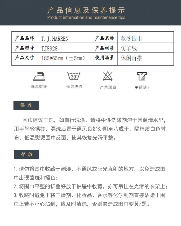 T.J.HARREN 蒂捷海伦秋冬围巾A款礼盒版TJ8828