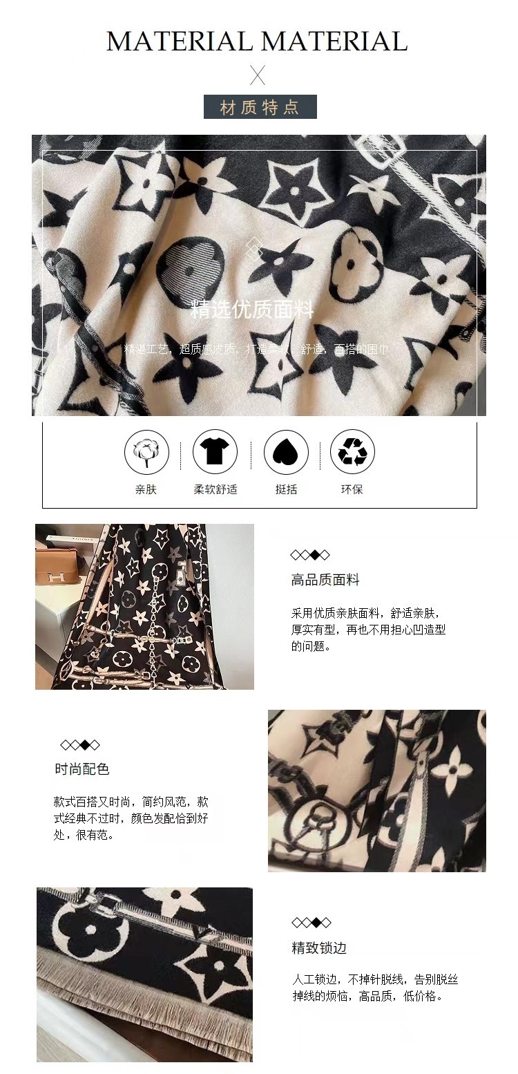 蒂捷海伦设计师巴黎时装周设计作品;细密锁边,精细流苏,品质卓尔不凡;优质亲肤面料,舒适柔软,厚实有型;两面双色双图案,适合每一天的气场;透气保暖,微凉秋日与凌凌冬日皆宜