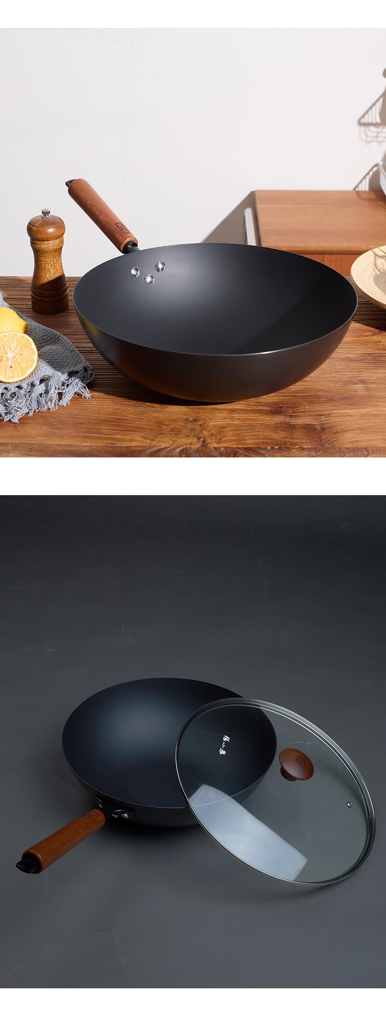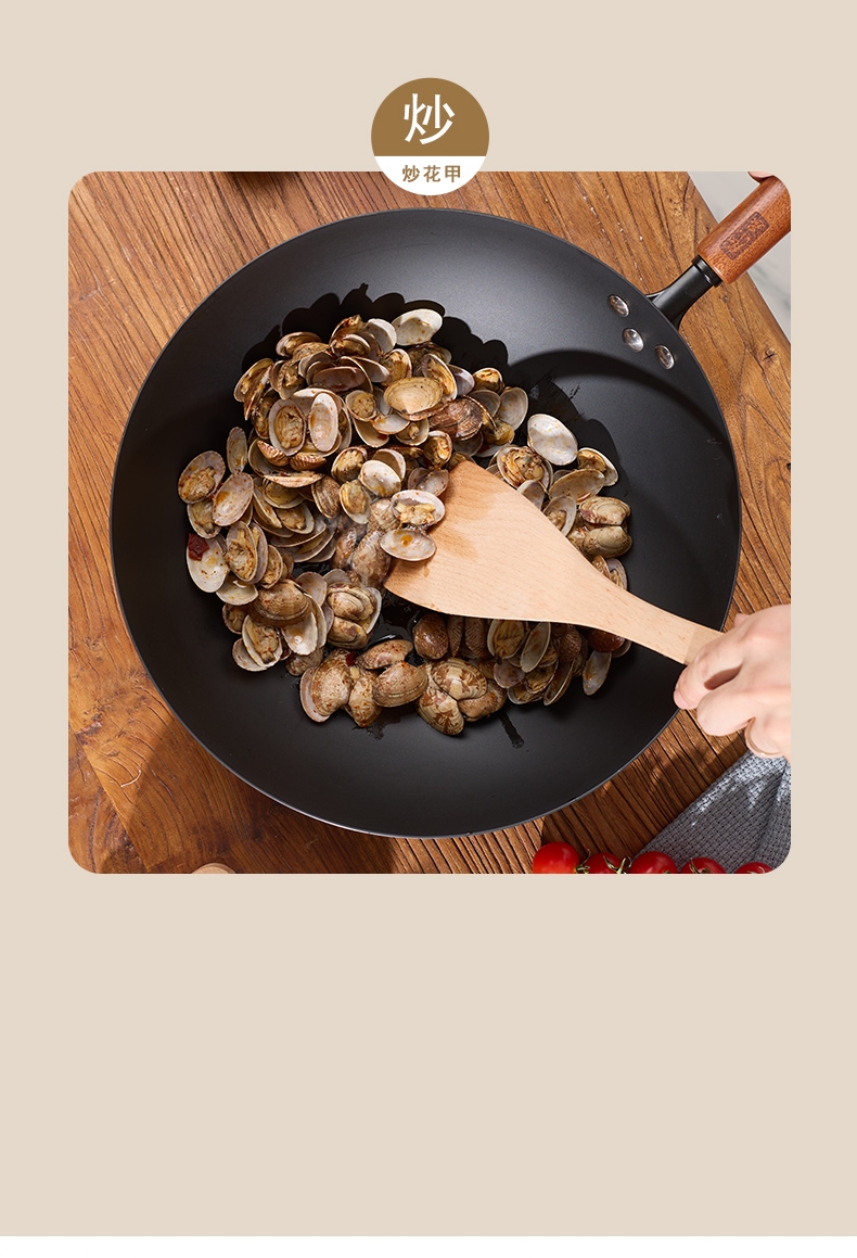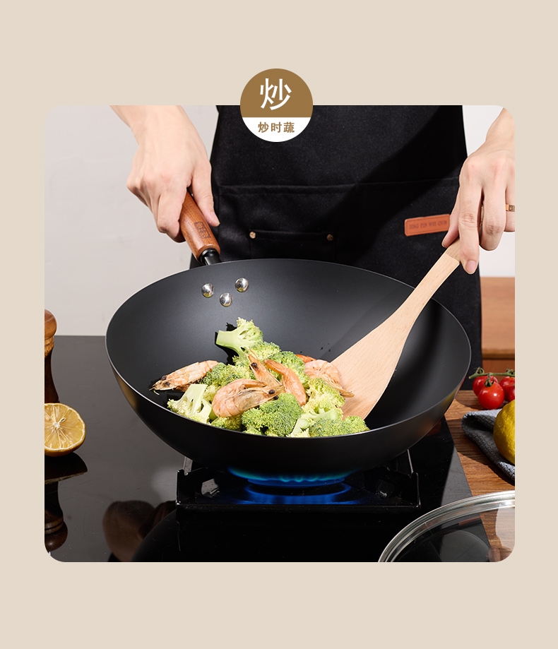 32cm 黄金口径,翻炒时食材受热无死角;天然实木手柄贴合掌心曲线,握感温润不打滑;一锅多用适配多种炉灶,兼顾实用与质感