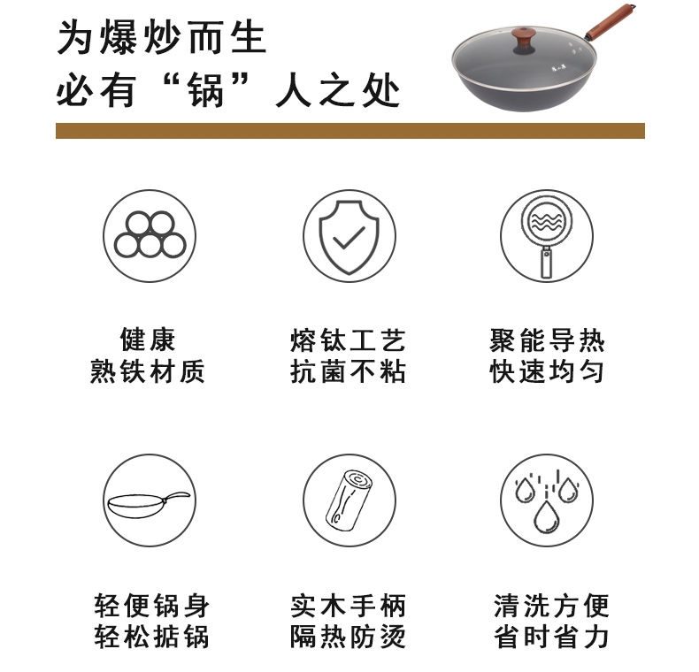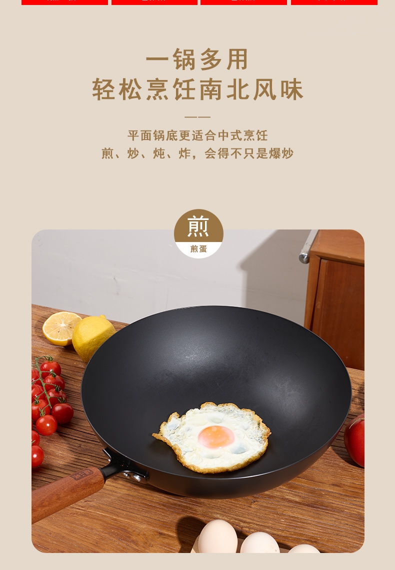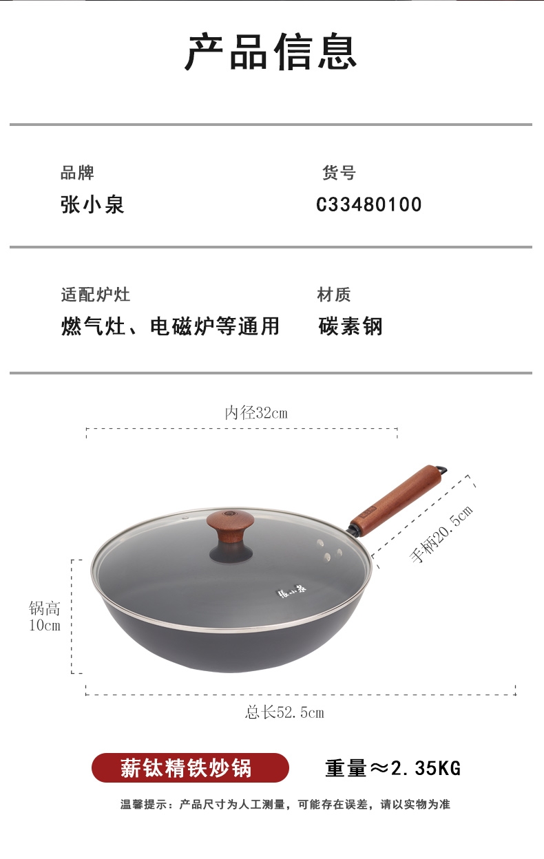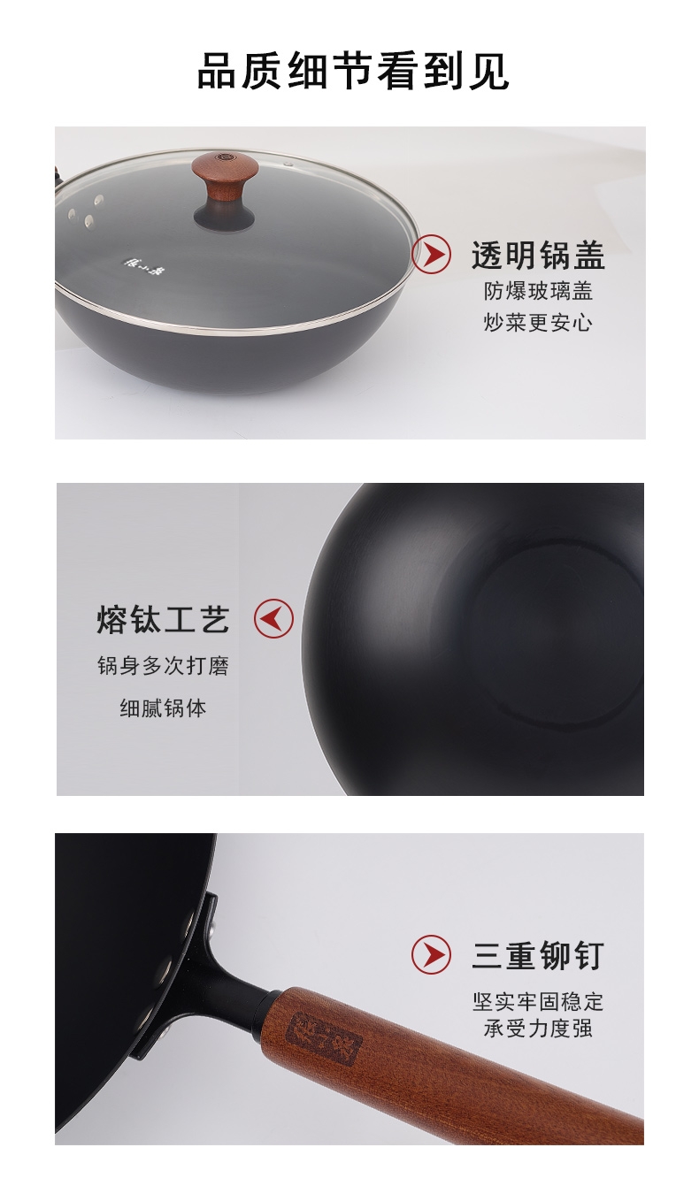 32cm 黄金口径,翻炒时食材受热无死角;天然实木手柄贴合掌心曲线,握感温润不打滑;一锅多用适配多种炉灶,兼顾实用与质感