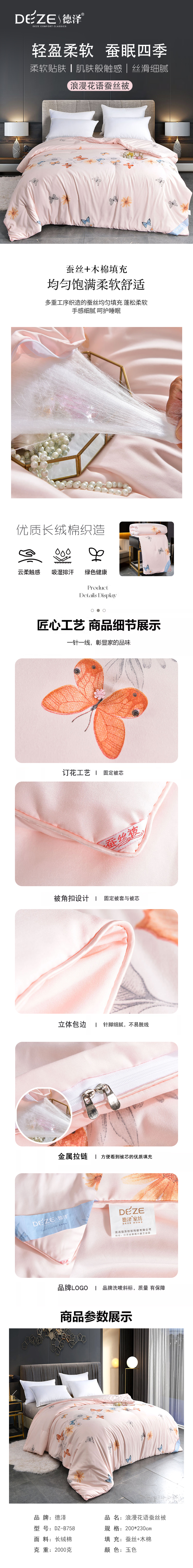 德泽 浪漫花语蚕丝被玉色DZ-B758