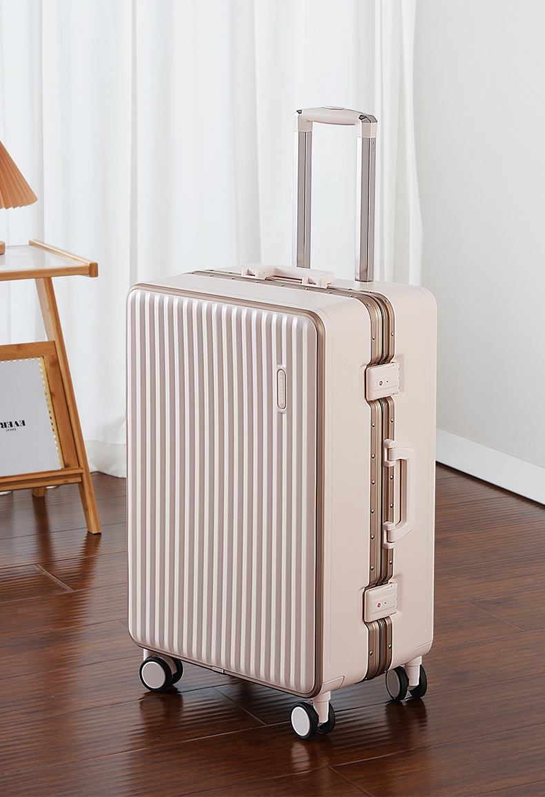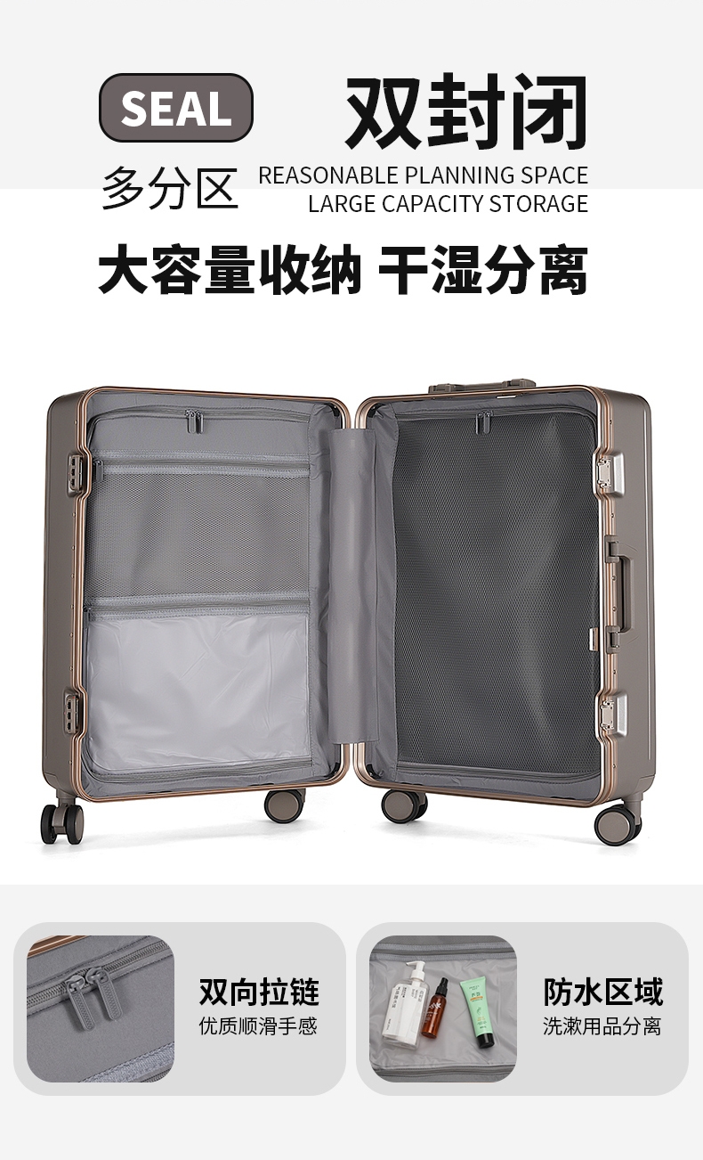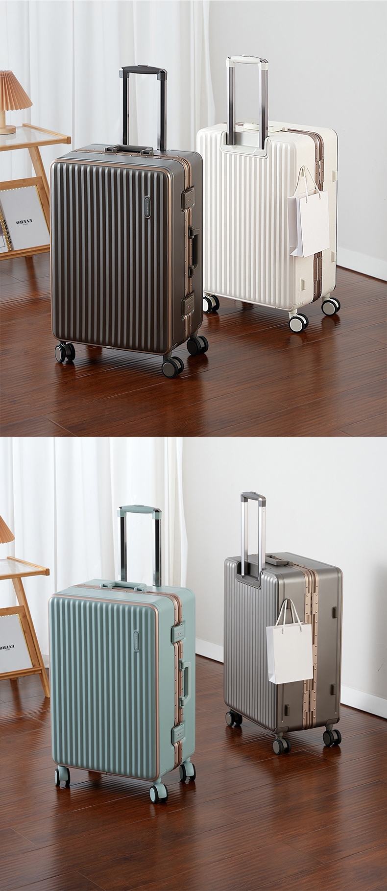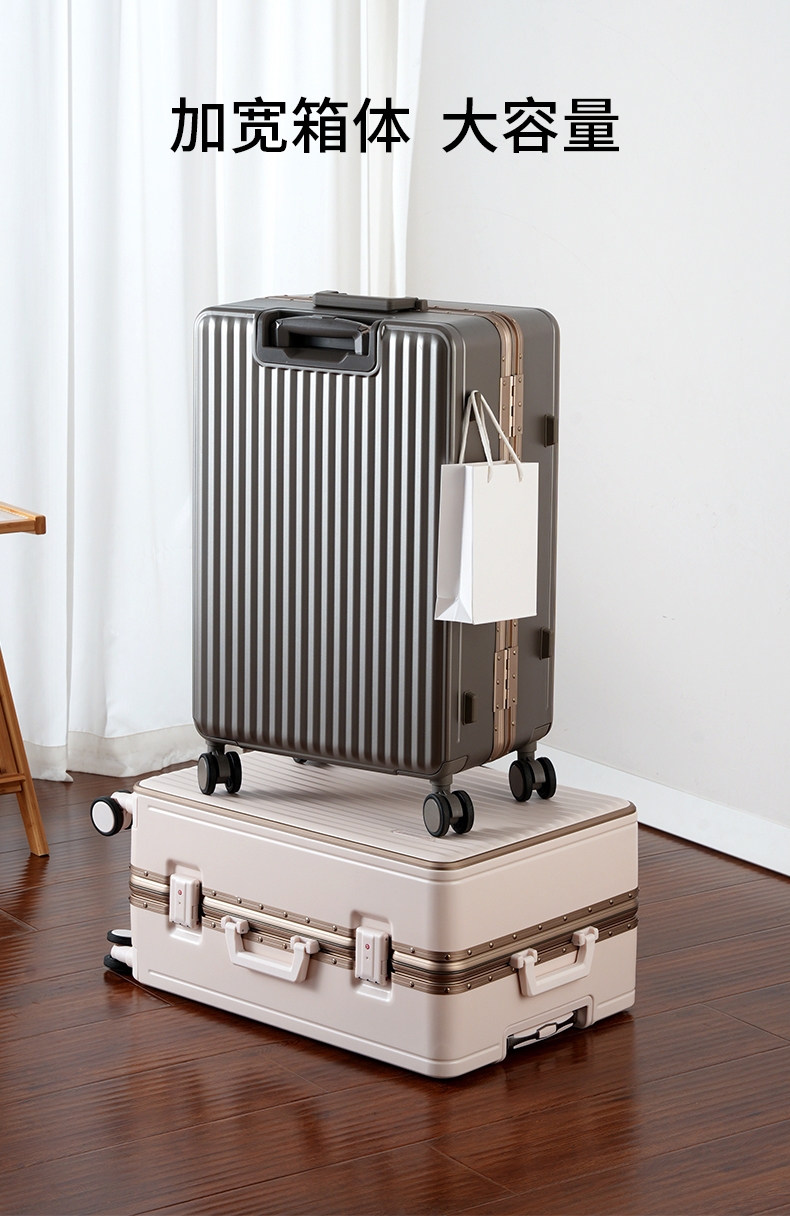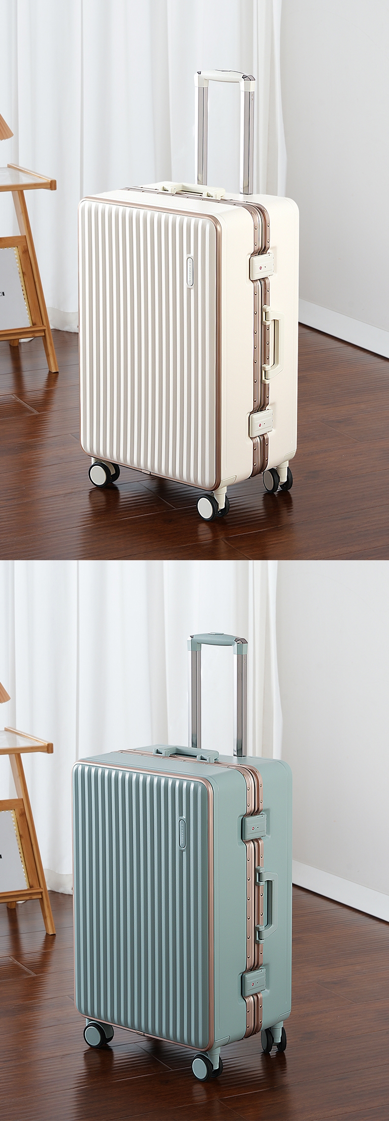 加厚PC合金外壳及铝框和合页,防刮坚固,耐磨防爆;加厚合金伸缩拉杆,拉合顺畅,握感舒适,结实稳固;带慢回弹顶部和侧部提手,竖提横提都方便
