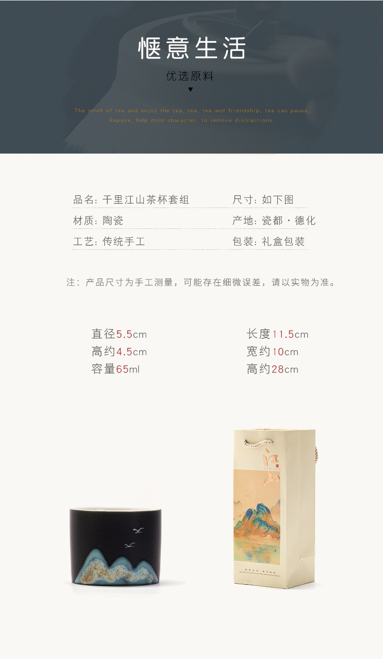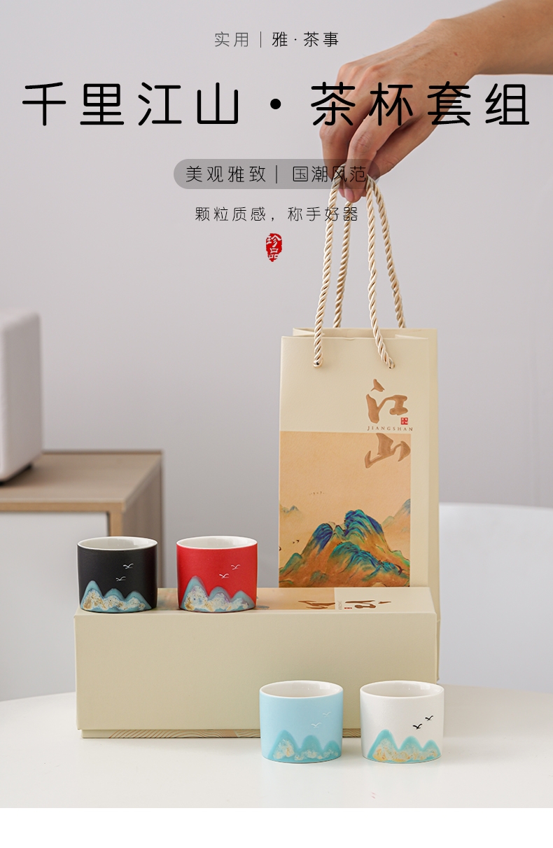 千里江山,国潮风范;简约器型,大小适中;精致礼盒,送礼好品
