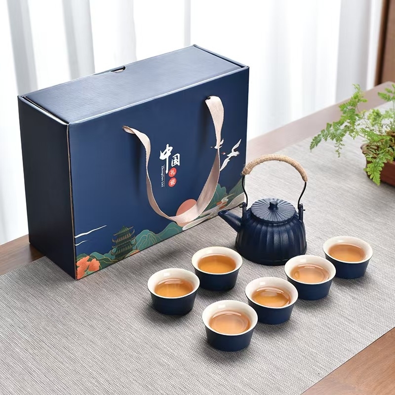 开门红喜庆色彩,亚光磨砂釉茶具,手感舒适。;提梁壶,侧把壶多款壶型,礼盒也有红色款;红色,蓝色,黑色三色茶具可选。