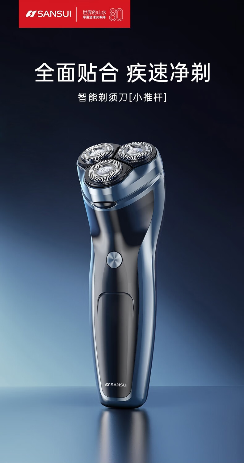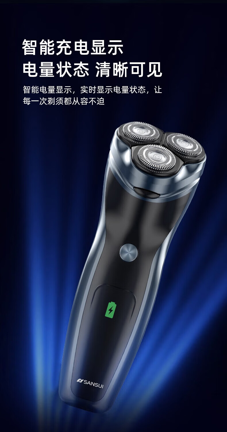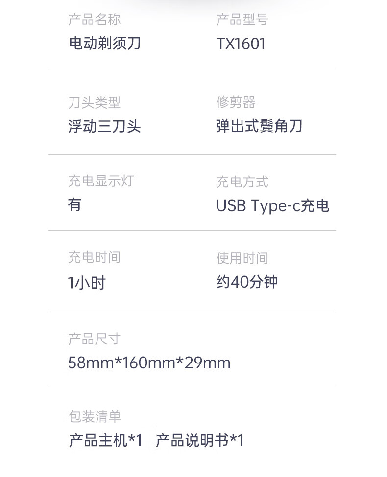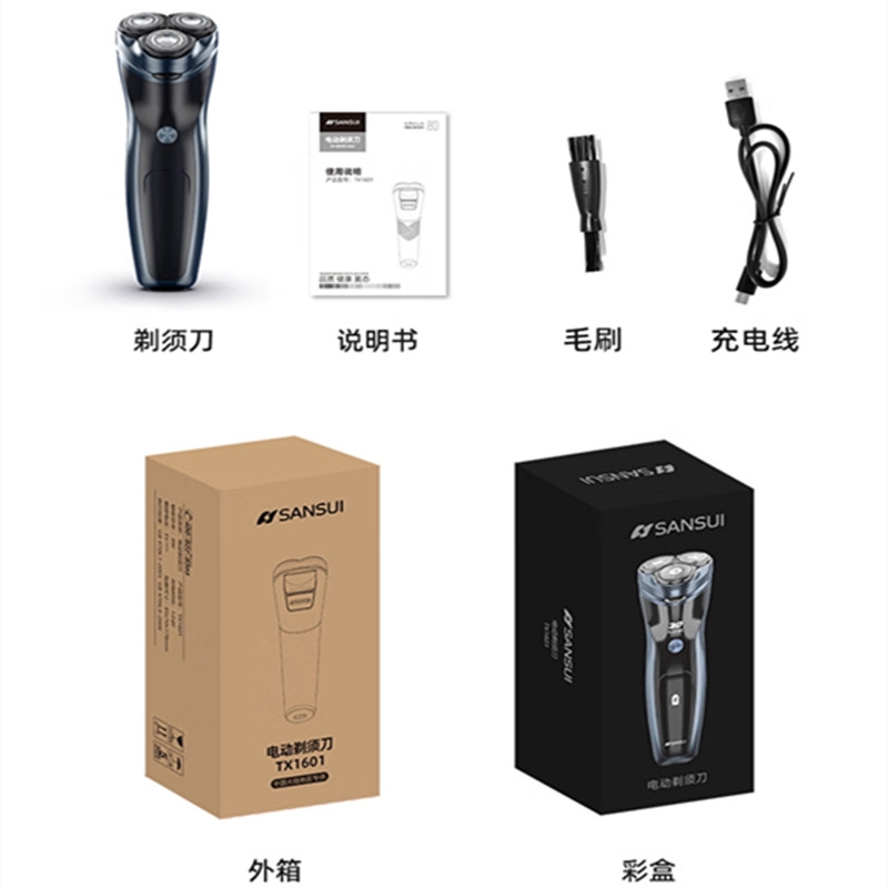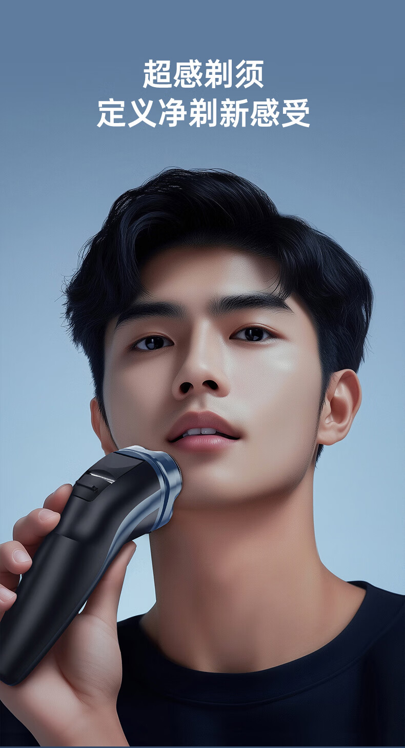 双环3D贴面刀网、仿生形态刀网架、刀头自动研磨技术;1小时充电、续航40分钟、智能防夹须系统;浮动贴面剃须系统、强劲马达智控芯片;LED智能电量显示、全身水洗IPX4、支持干湿双剃;弹出式鬓角刀,包装方式:彩盒+网购包装