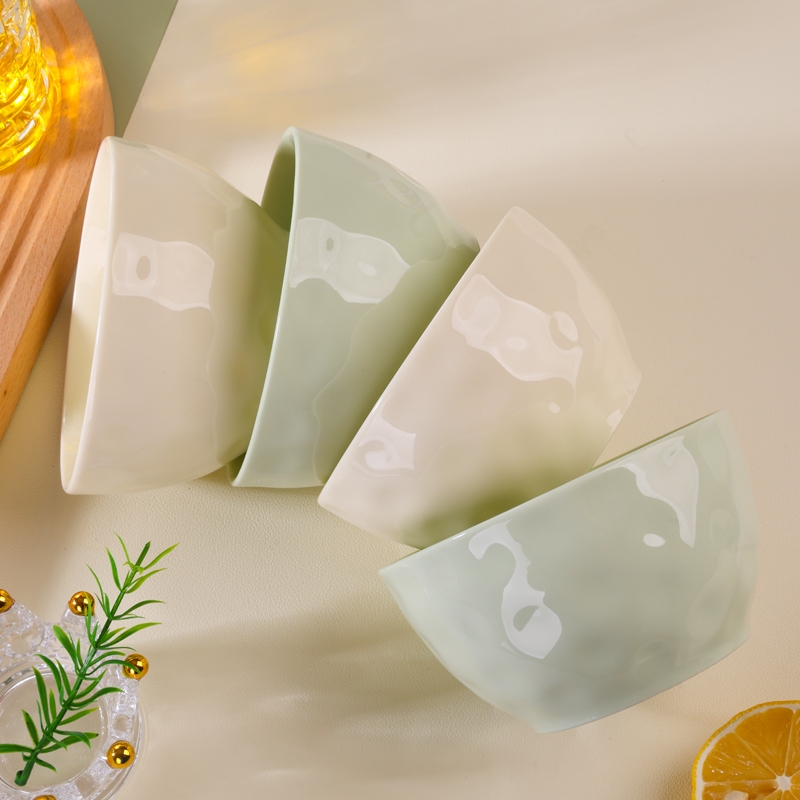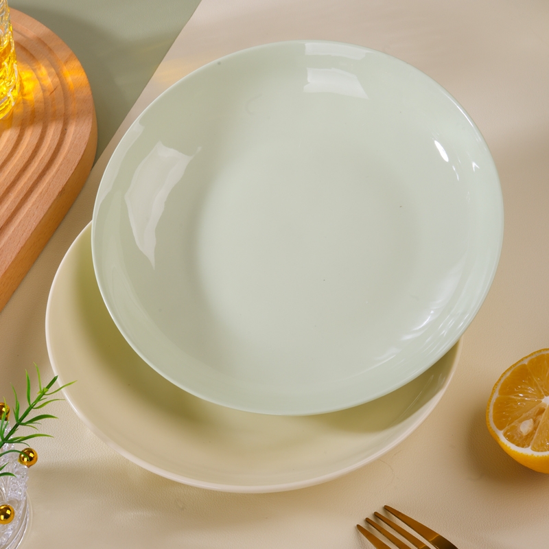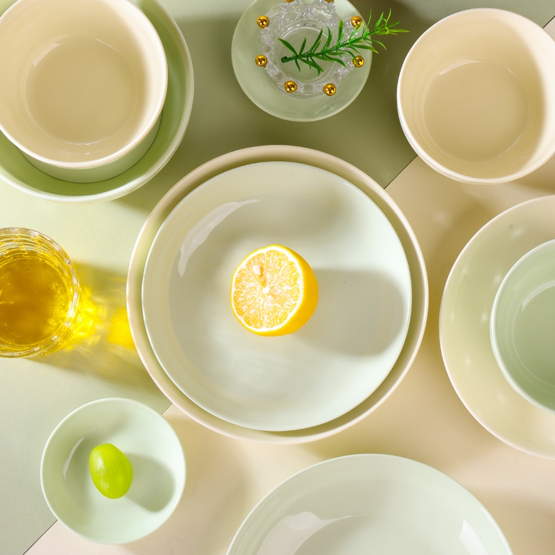 釉下彩奶油风餐具套装;瓷质细腻,湿润平整;釉面光滑,易清洗