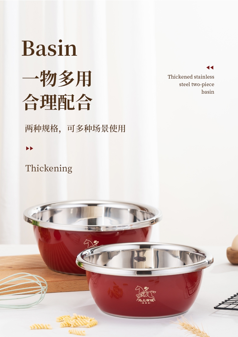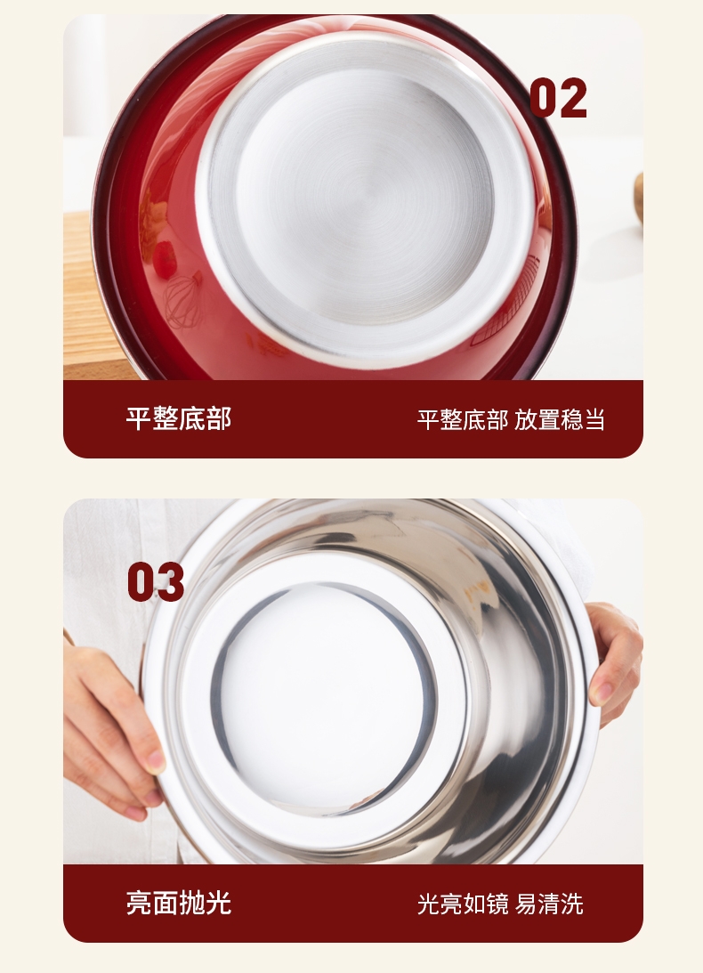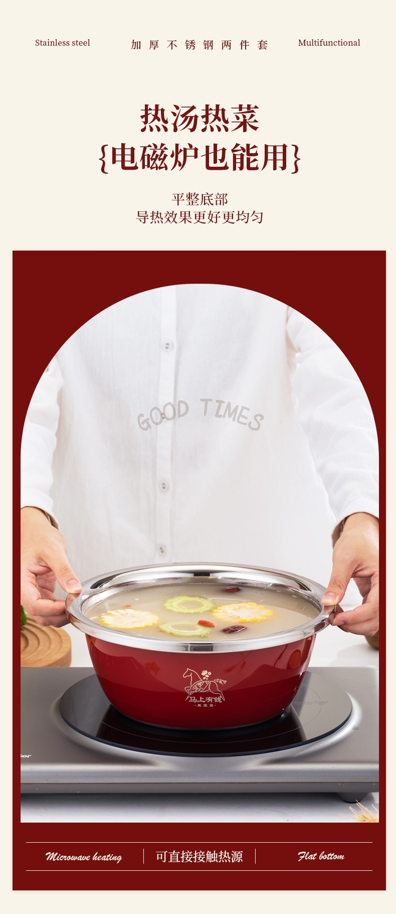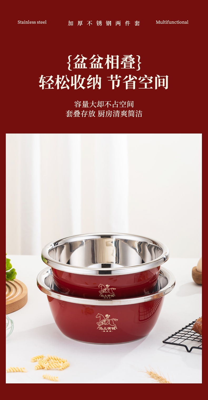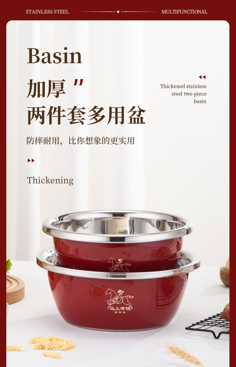 颜值在线,厨房不再单调,精美礼盒包装,送礼有面子。;送礼就送聚宝盆,美好寓意,广纳八方财富,汇聚四方鸿;加厚盆,宽边设计方便端拿,精抛工艺,清洗方便。