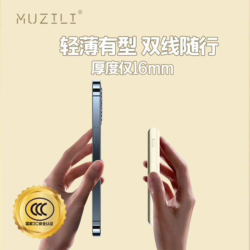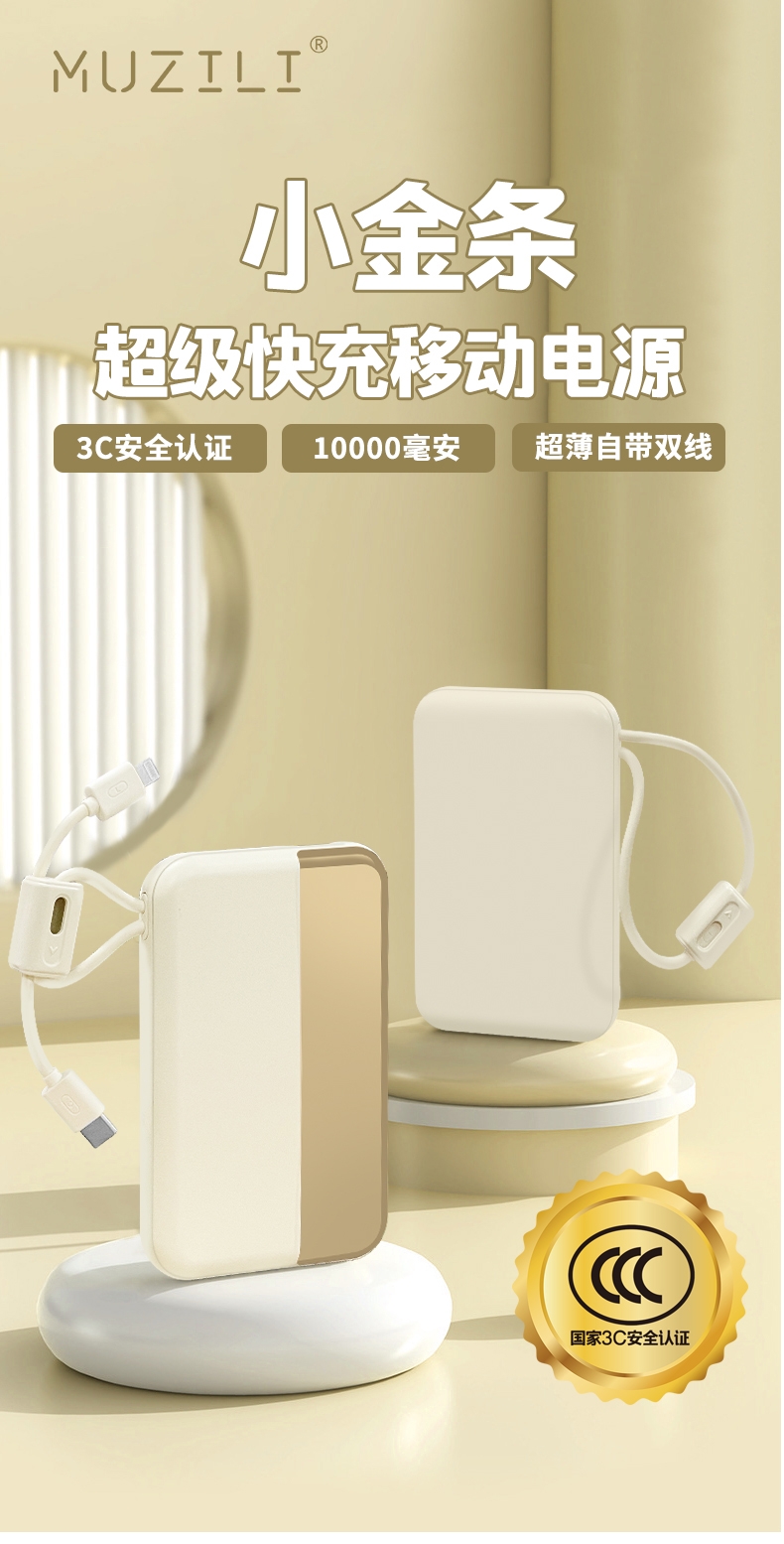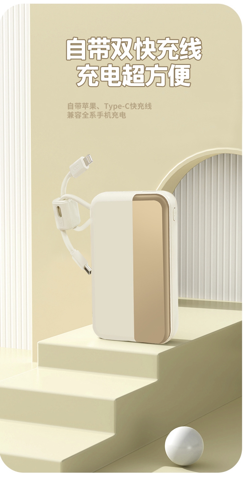 10000毫安实标容量,超薄设计;22.5W超级快充,兼容PD20W;内置苹果/Type-C接口满足各种手机充电;符合民航局标准,可随身携带