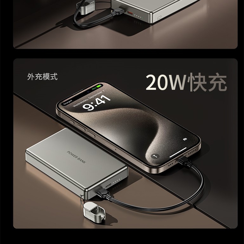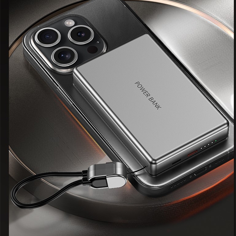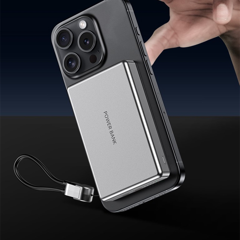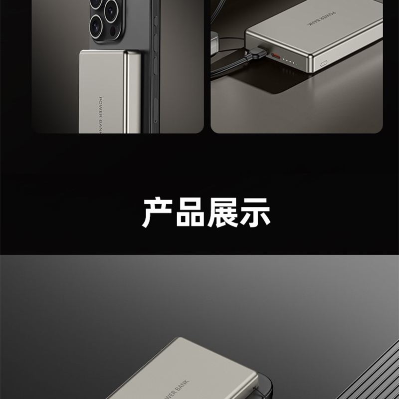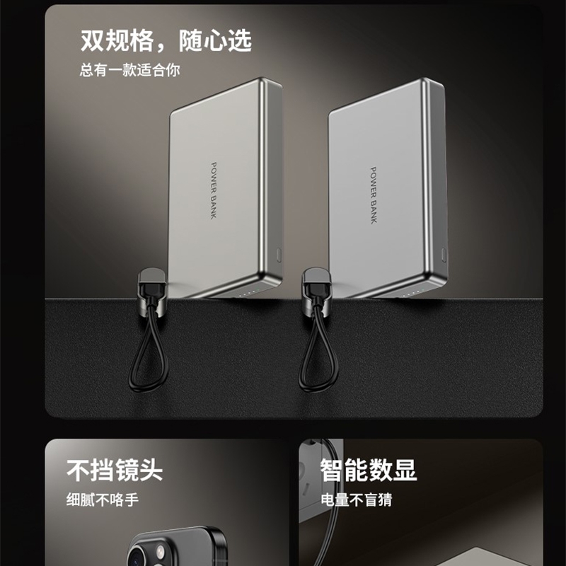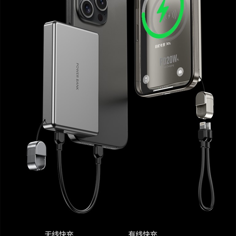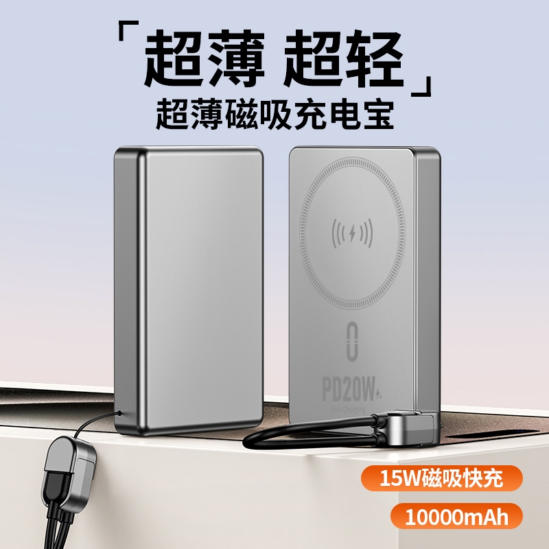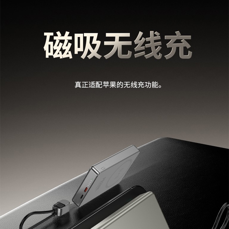 MUZILI 超薄商务铝合金磁吸自带线充电宝