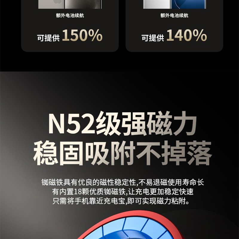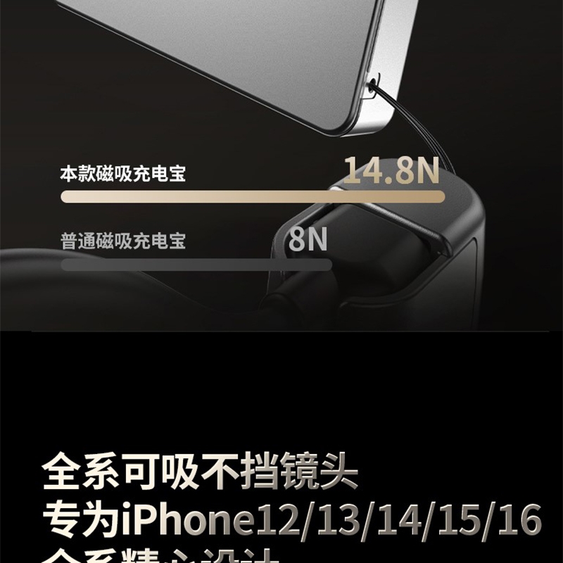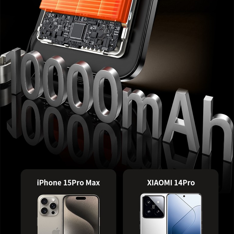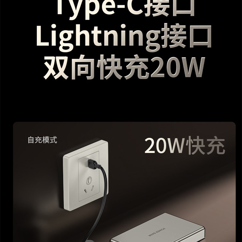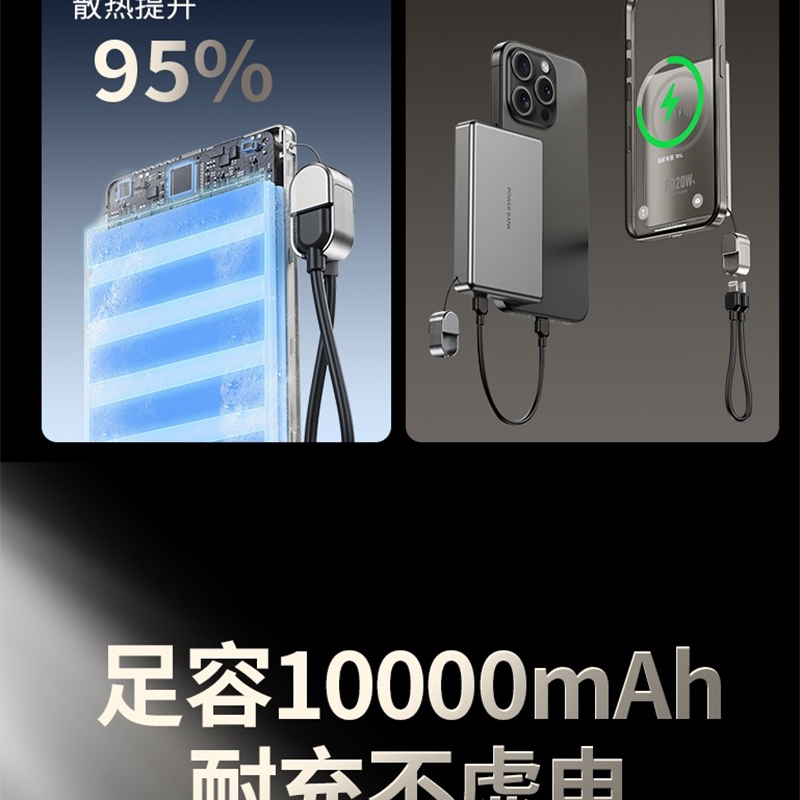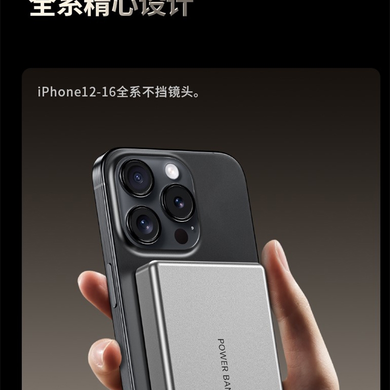 10000毫安22.5W双向超级快充;15W超强磁吸无线充电;铝合金超薄机身,自带双向快充数据线;3C认证,符合民航局标准,可随身携带