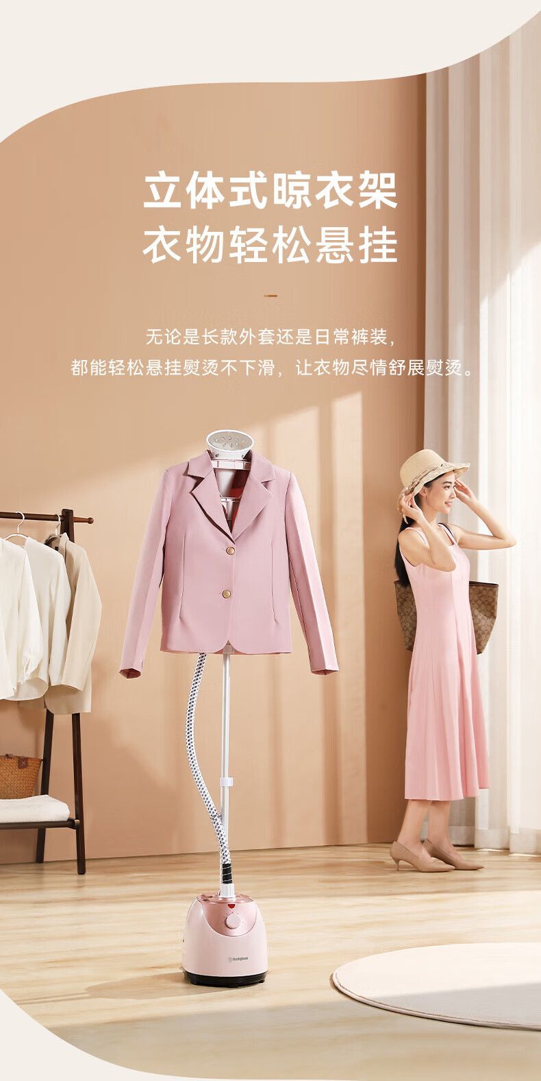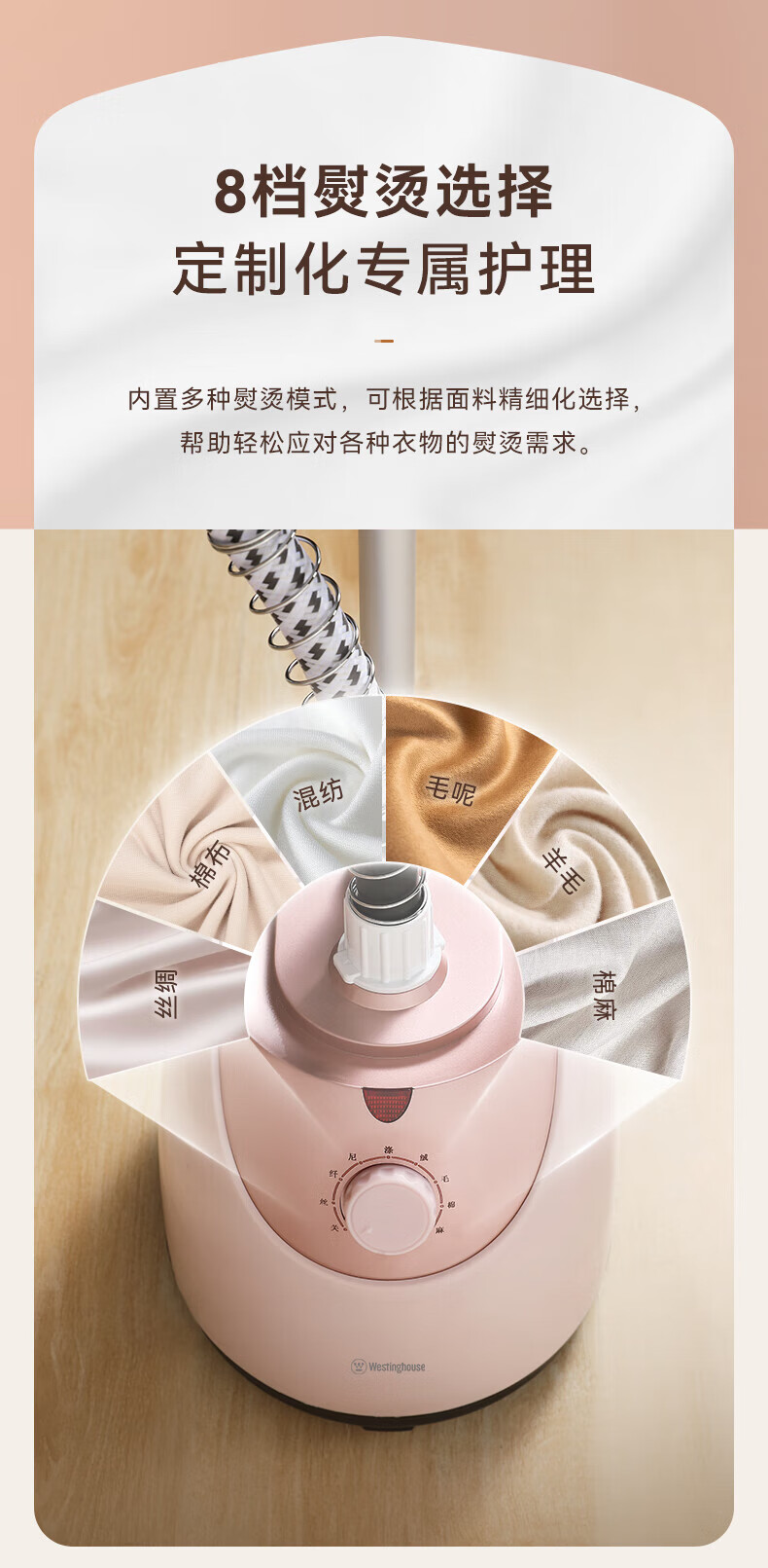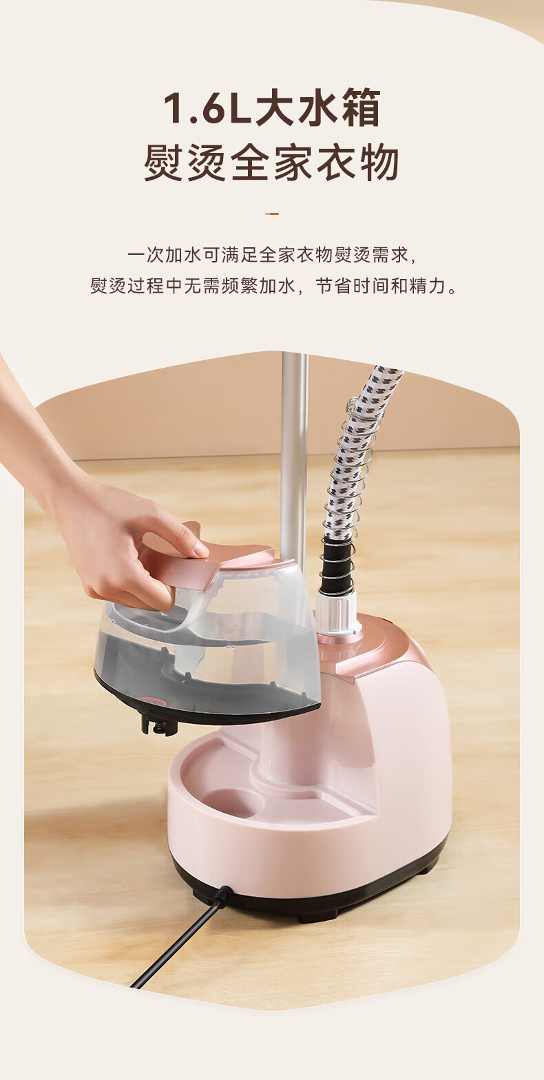 1800W大蒸汽,强劲穿透,快速除皱重塑衣形;平烫/挂烫搭配8档蒸汽,轻松熨烫各种衣物;;预热快无需久等、多孔蒸汽,细腻不伤衣;