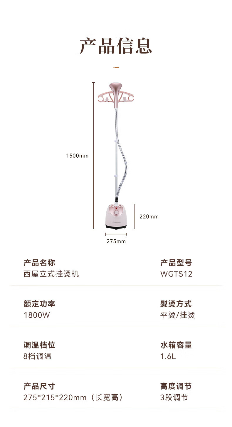 西屋 手持立式蒸汽挂烫机WGTS12