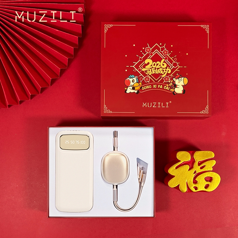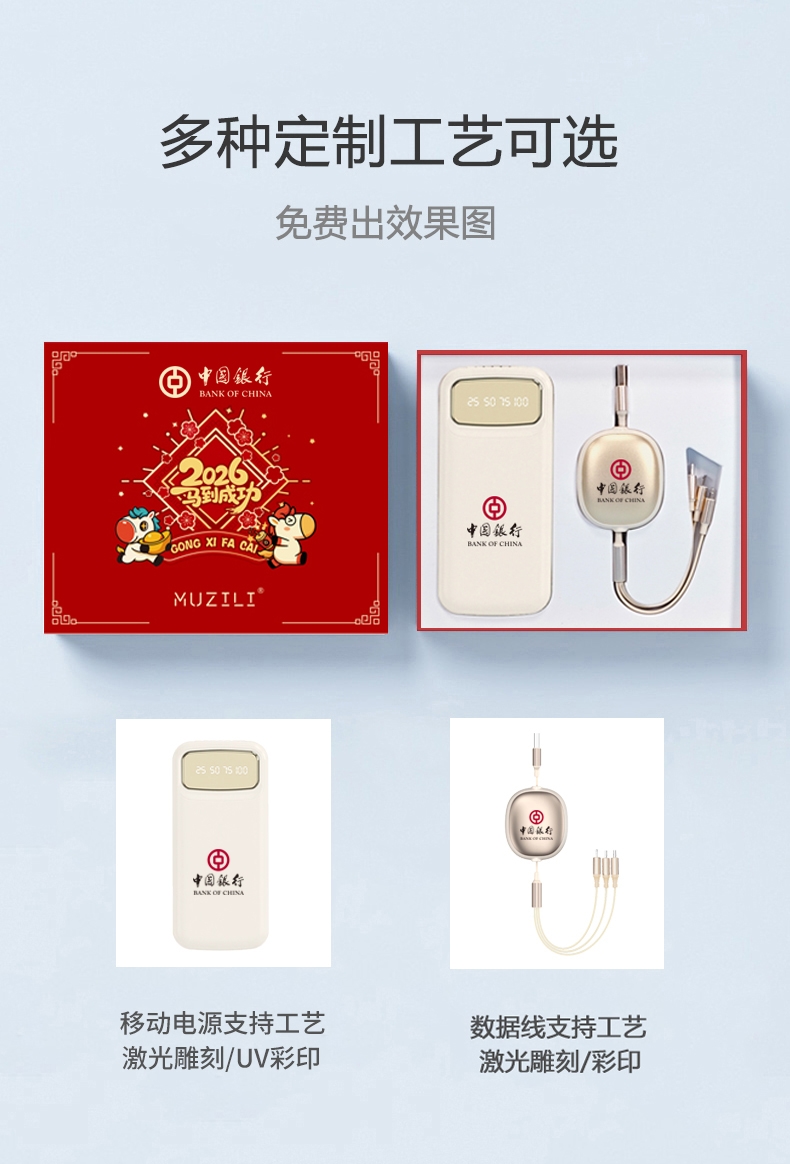 配置清单:一万毫安自带四线移动电源*1、66W铝合金超级快充一拖三伸缩数据线*1、天地盖礼盒*1、手提袋*1