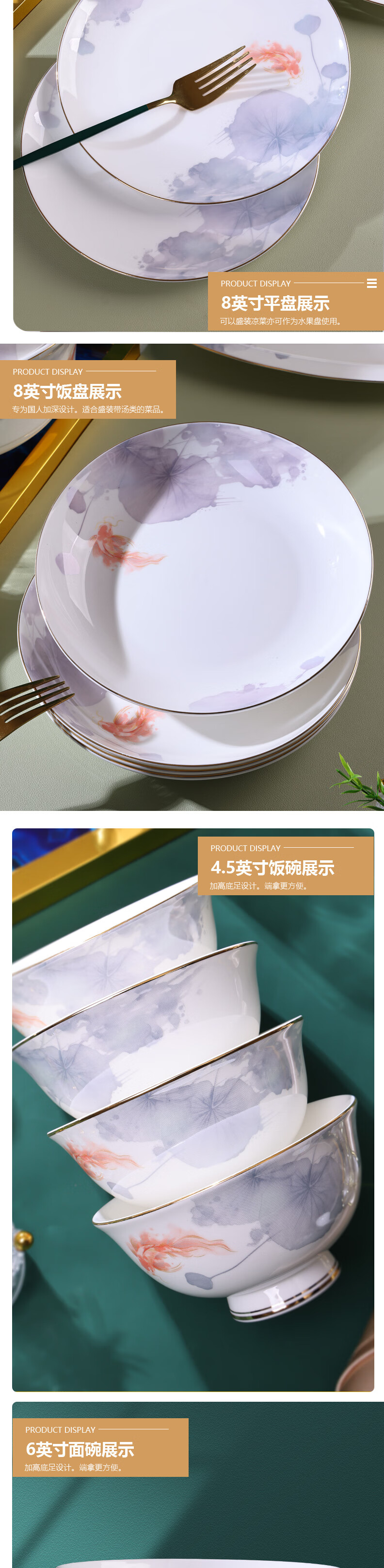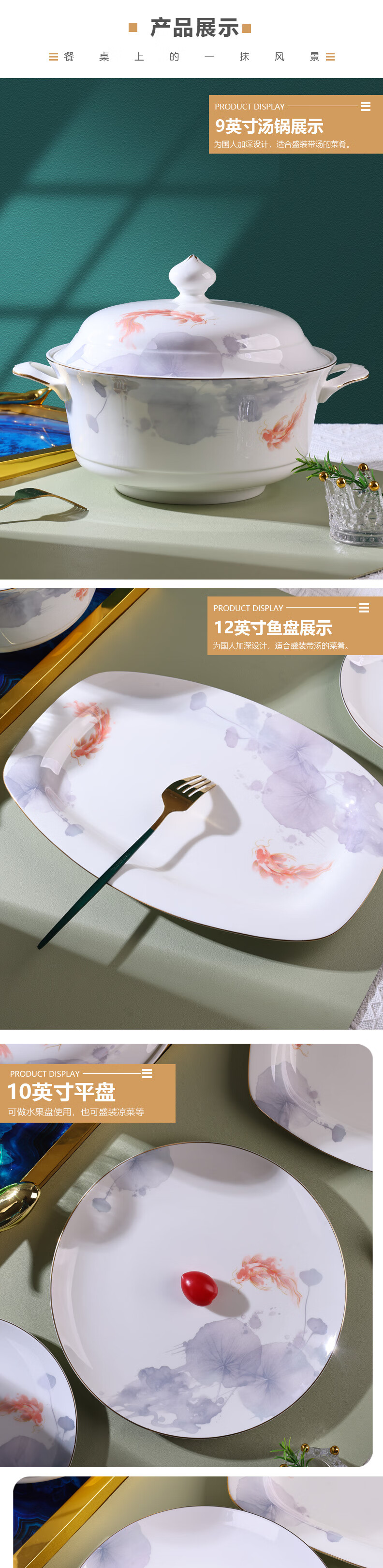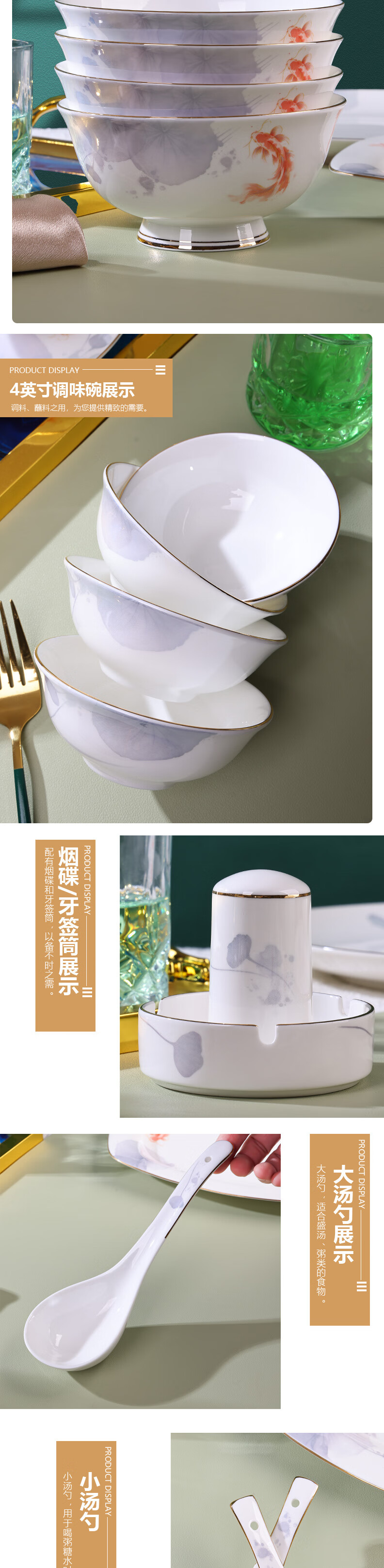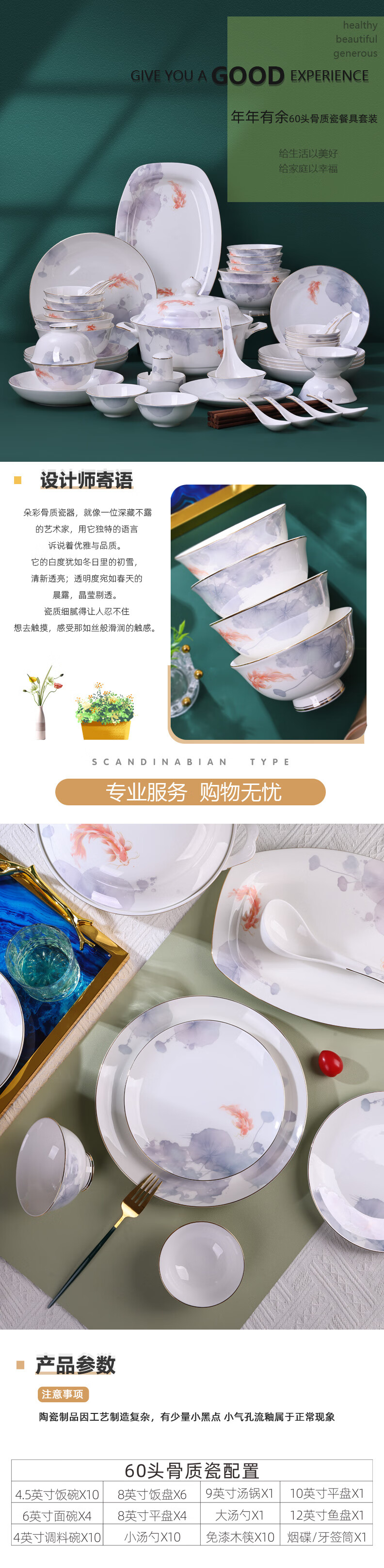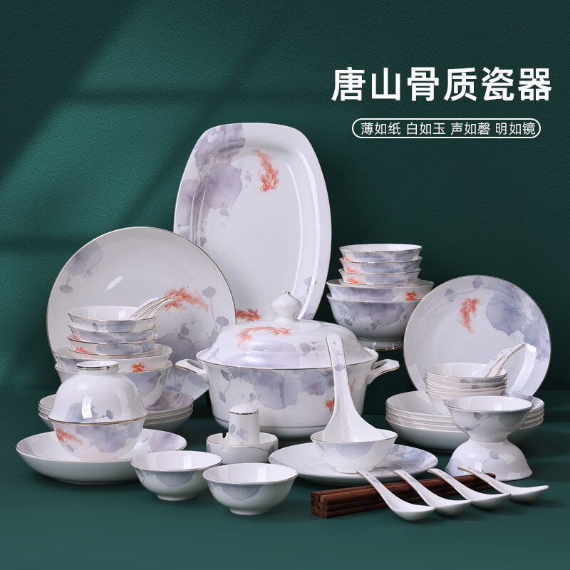 朵彩 骨瓷餐具套装荷韵锦鲤60头DC-B6006T