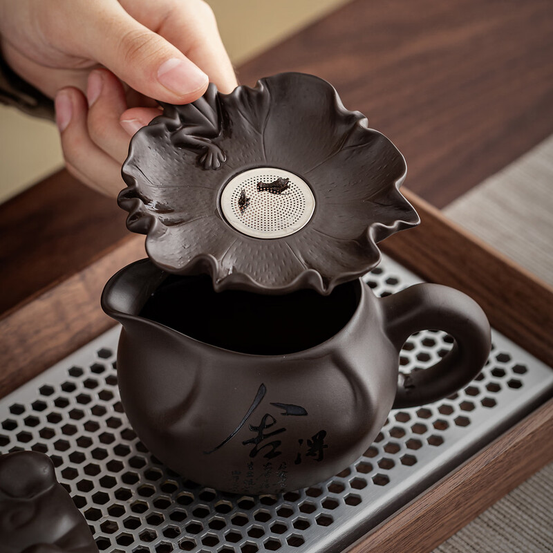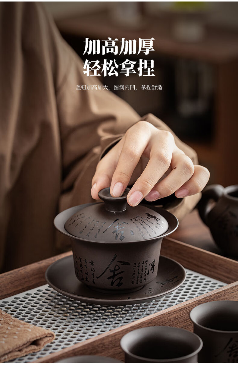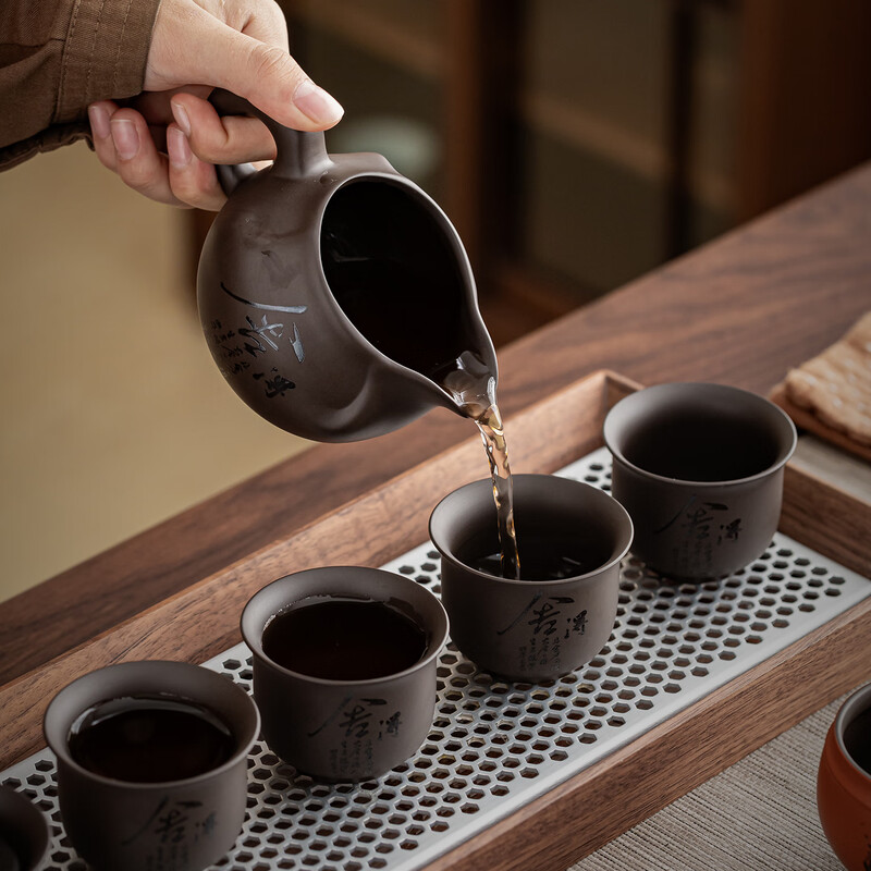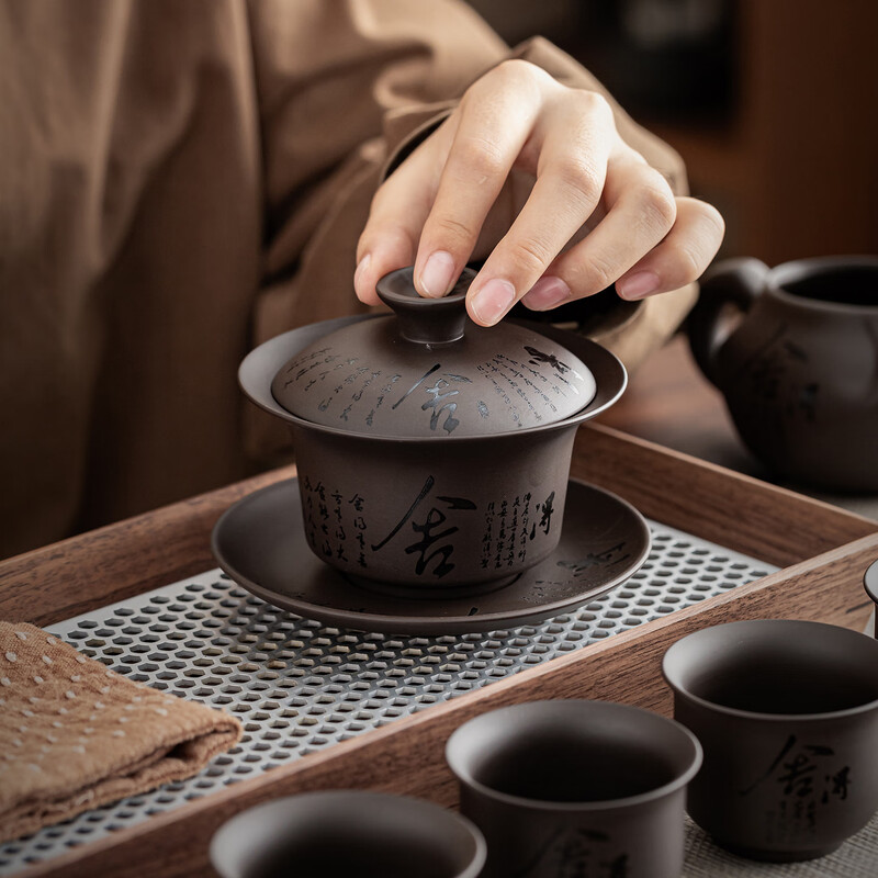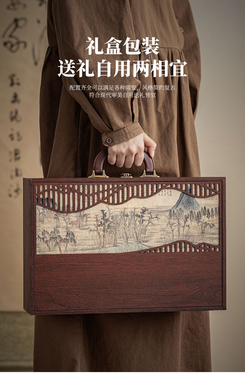 紫砂质感:器型古朴,“舍得”刻字藏禅意;配件精致:盖碗+公道杯+六杯+荷形过滤,品饮超全; 礼盒吸睛:山水木盒,书法墨香里的中式美学;格调拉满:商务送礼有面,日常品茗显品味