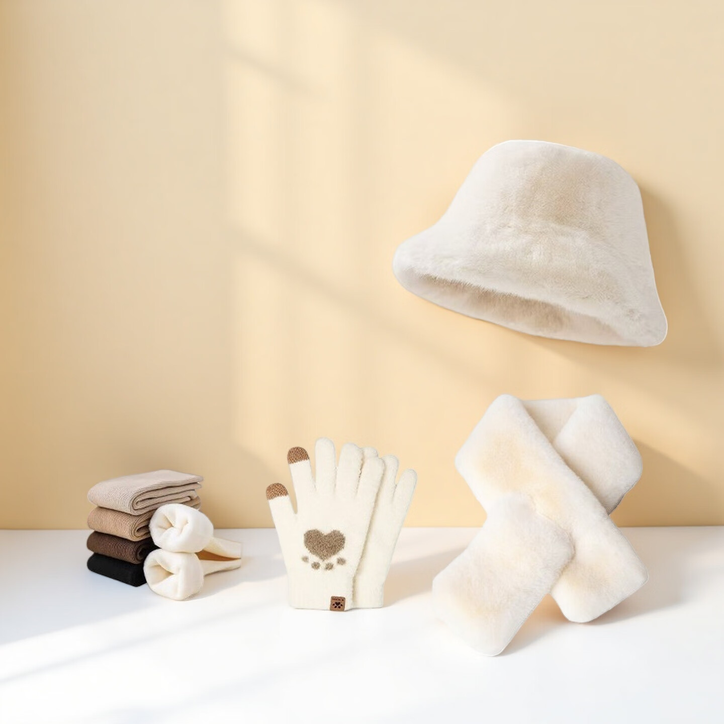 妃锦宝贝 冬季保暖帽手套围巾三件套