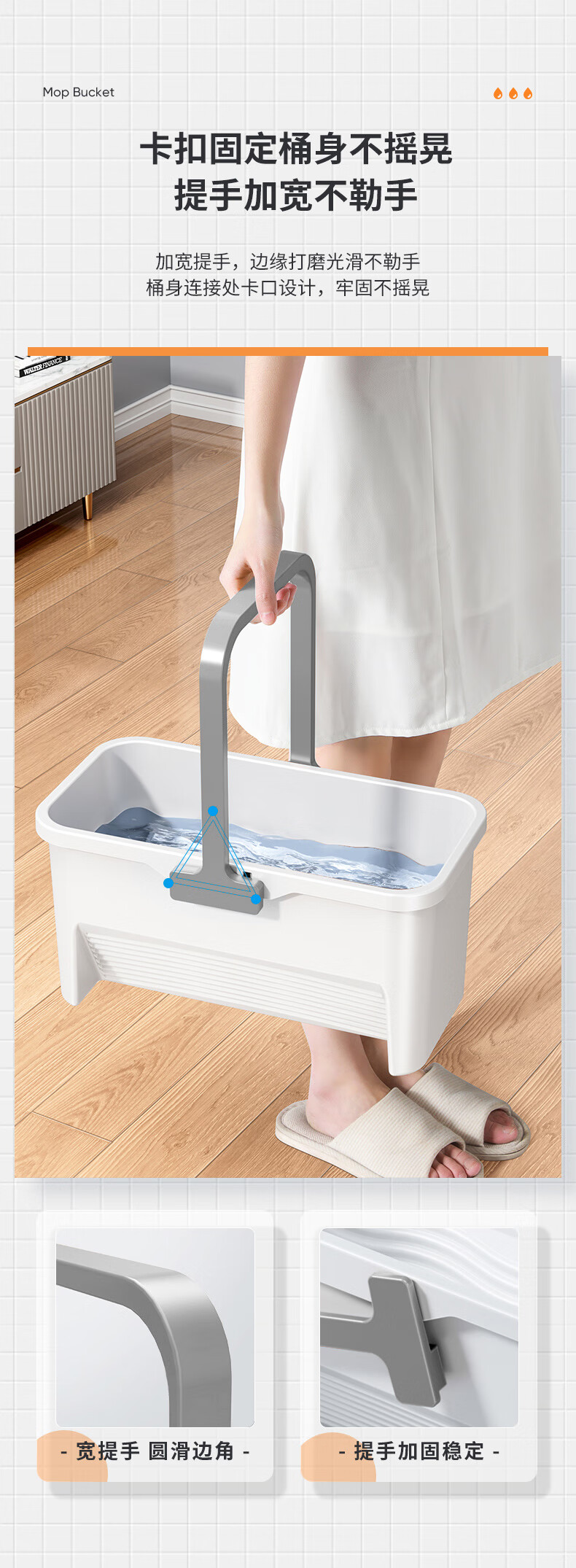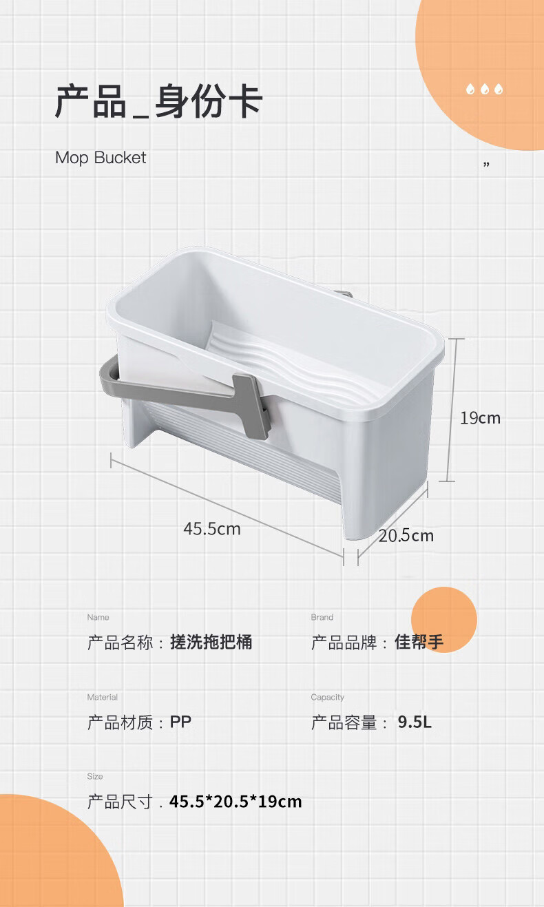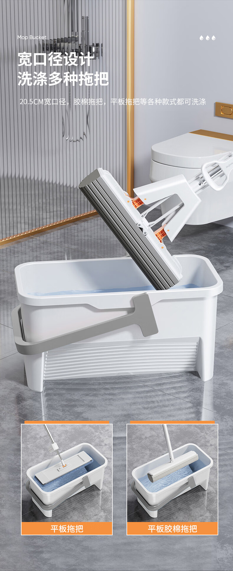 凸起立体结构增加摩擦,深入清洁胶棉头缝隙;科学桶身容量,14L满足日常拖把洗涤需要;桶身采用坚固PP材质,加厚桶壁,结实耐用不易坏