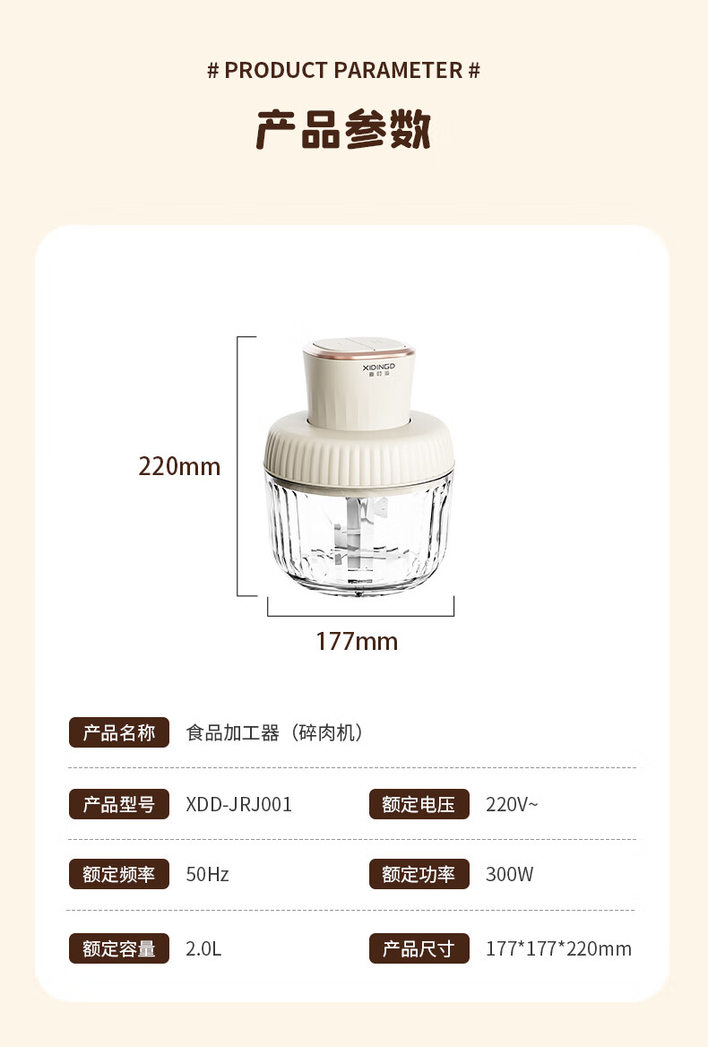 喜叮当 双擎绞肉机多功能料理机XDD-JRJ001