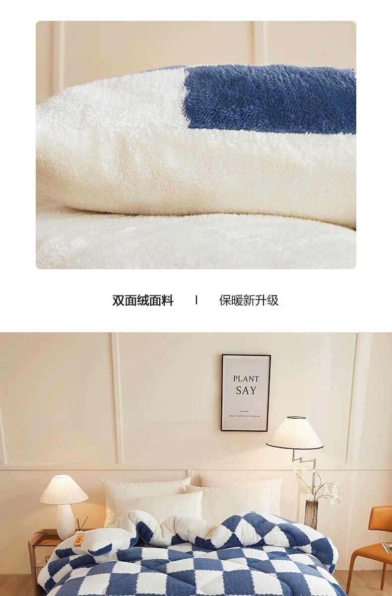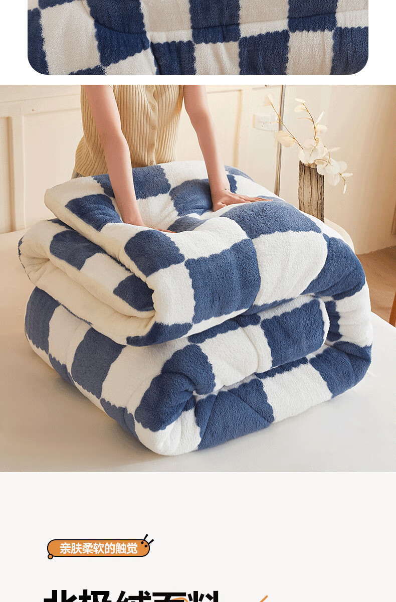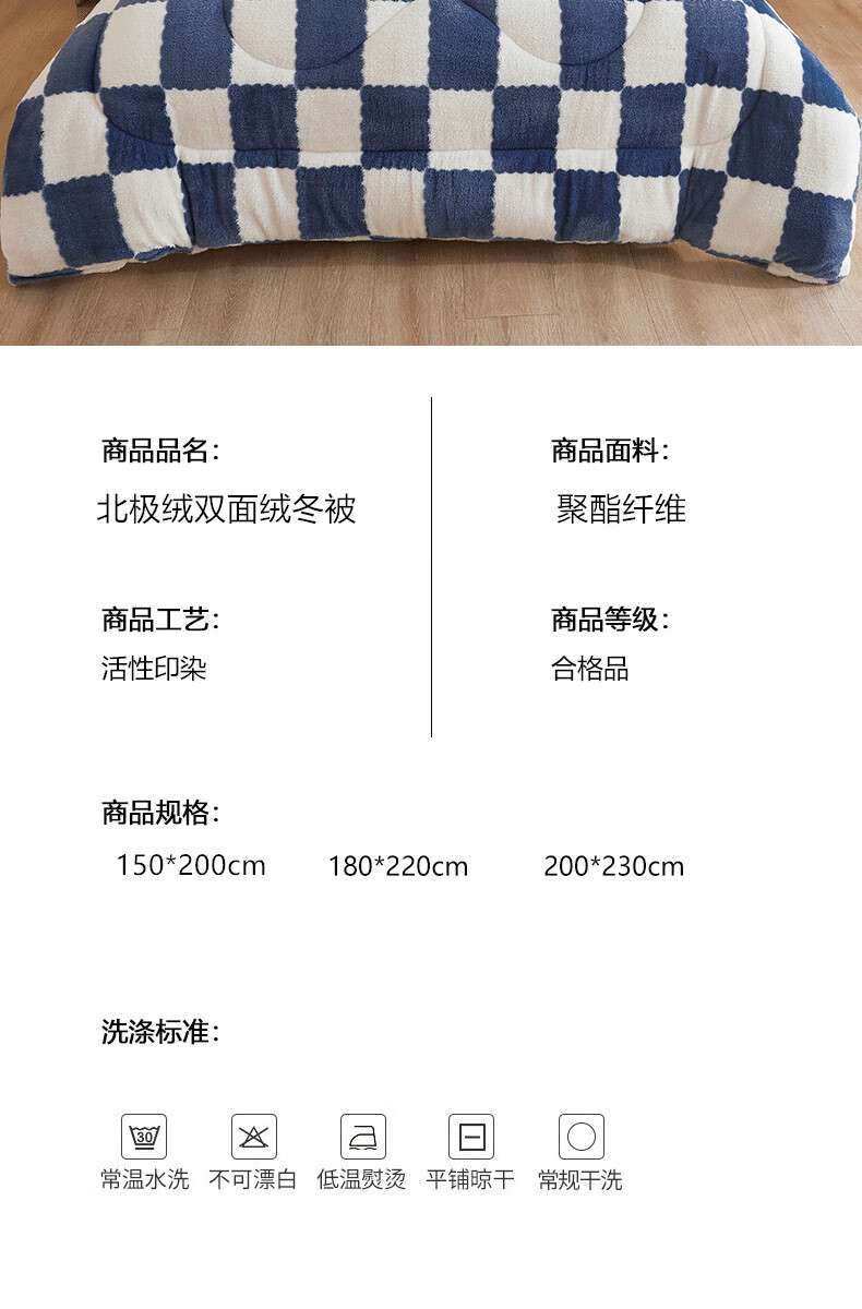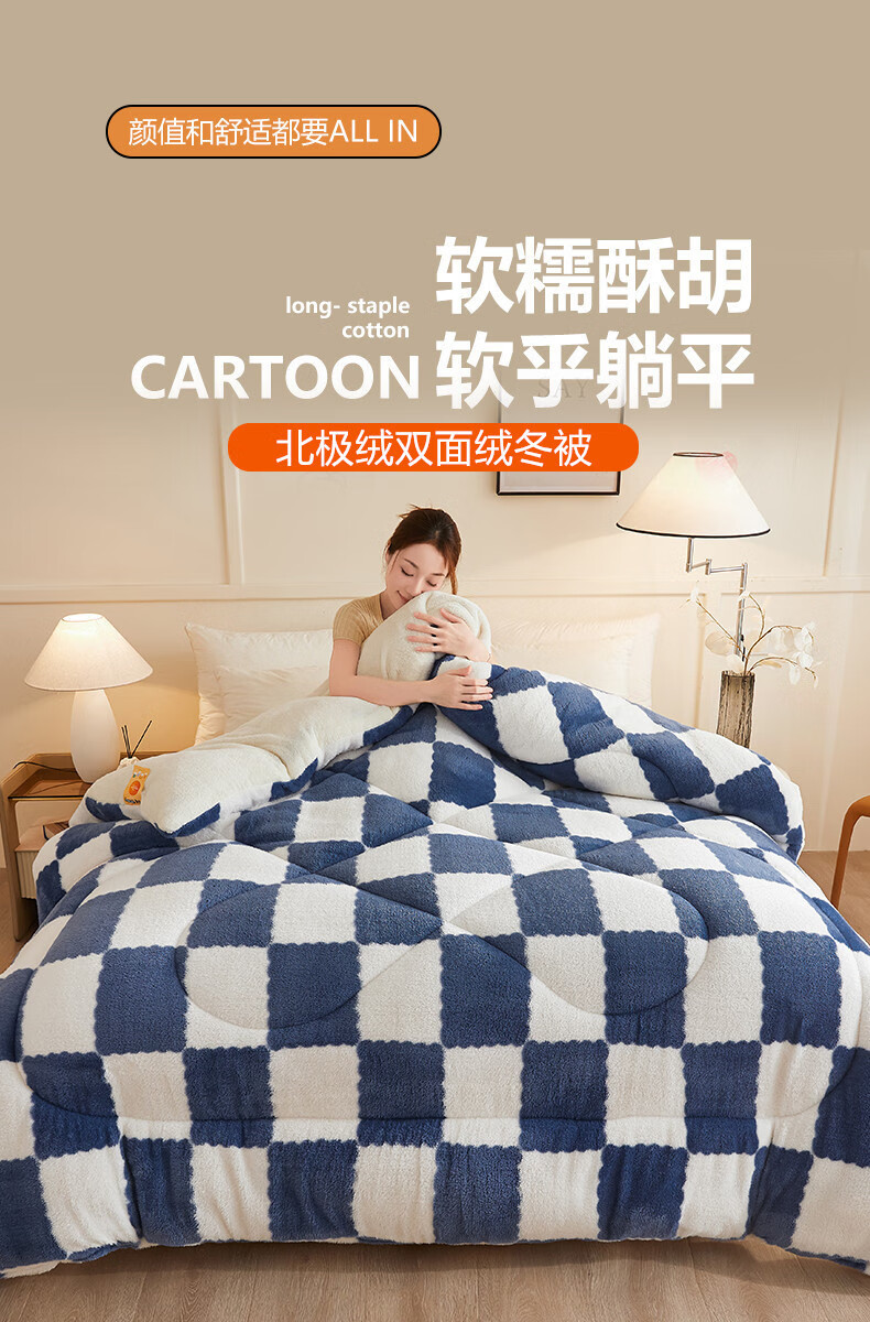蕊丝坊 双面绒棋盘格冬被被芯加厚保暖被
