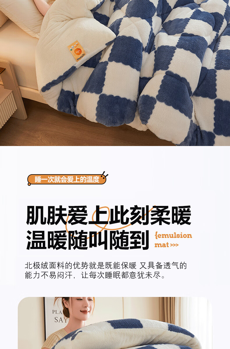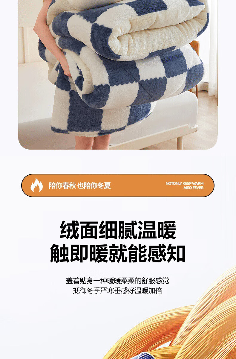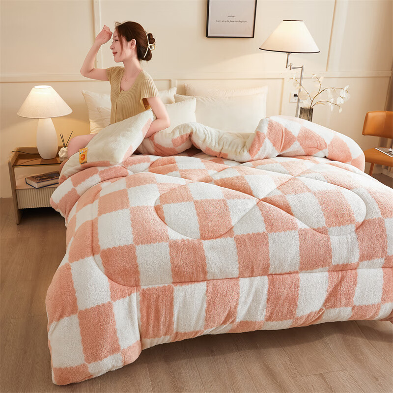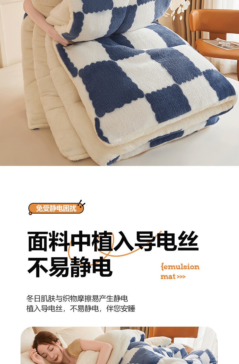 蕊丝坊 双面绒棋盘格冬被被芯加厚保暖被