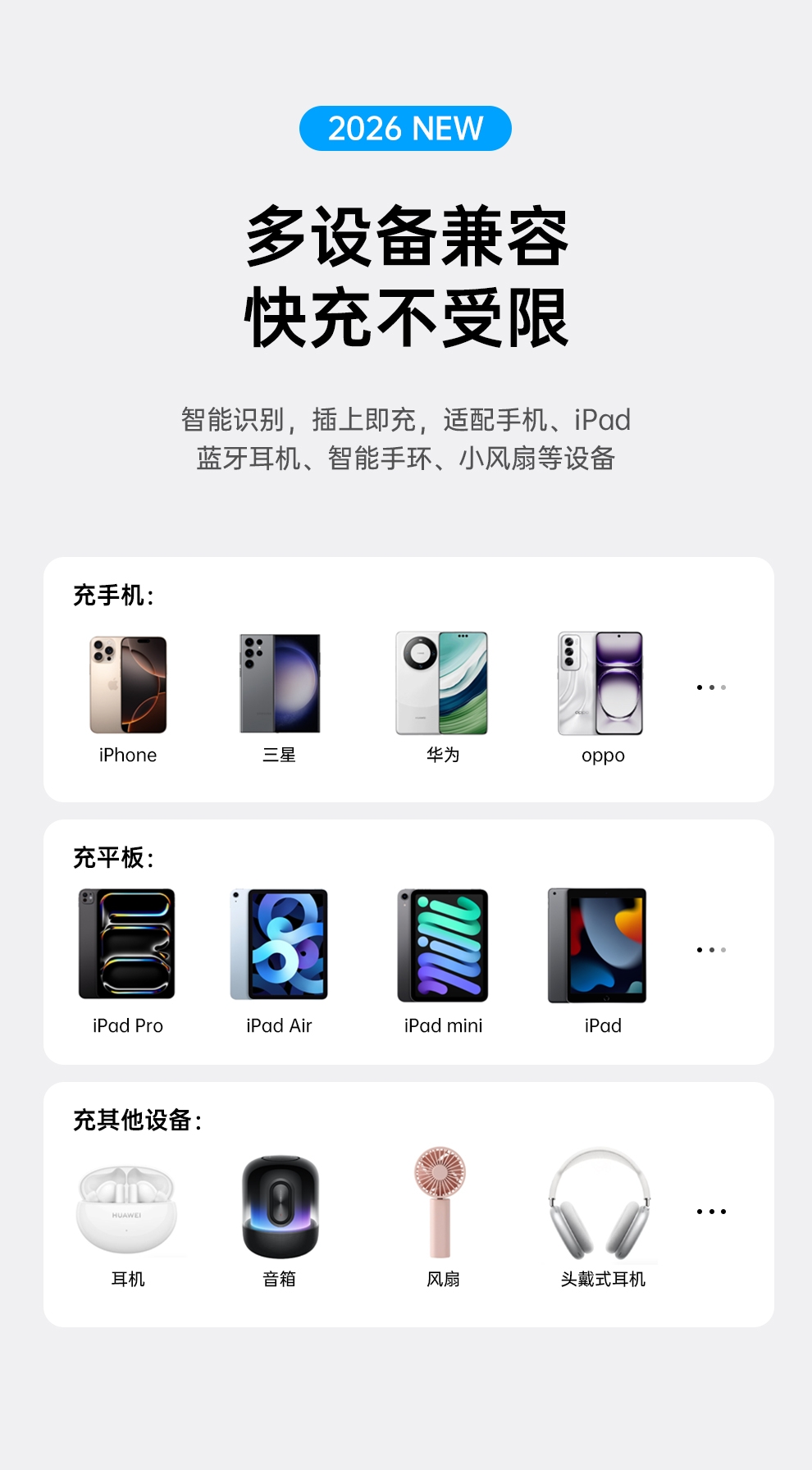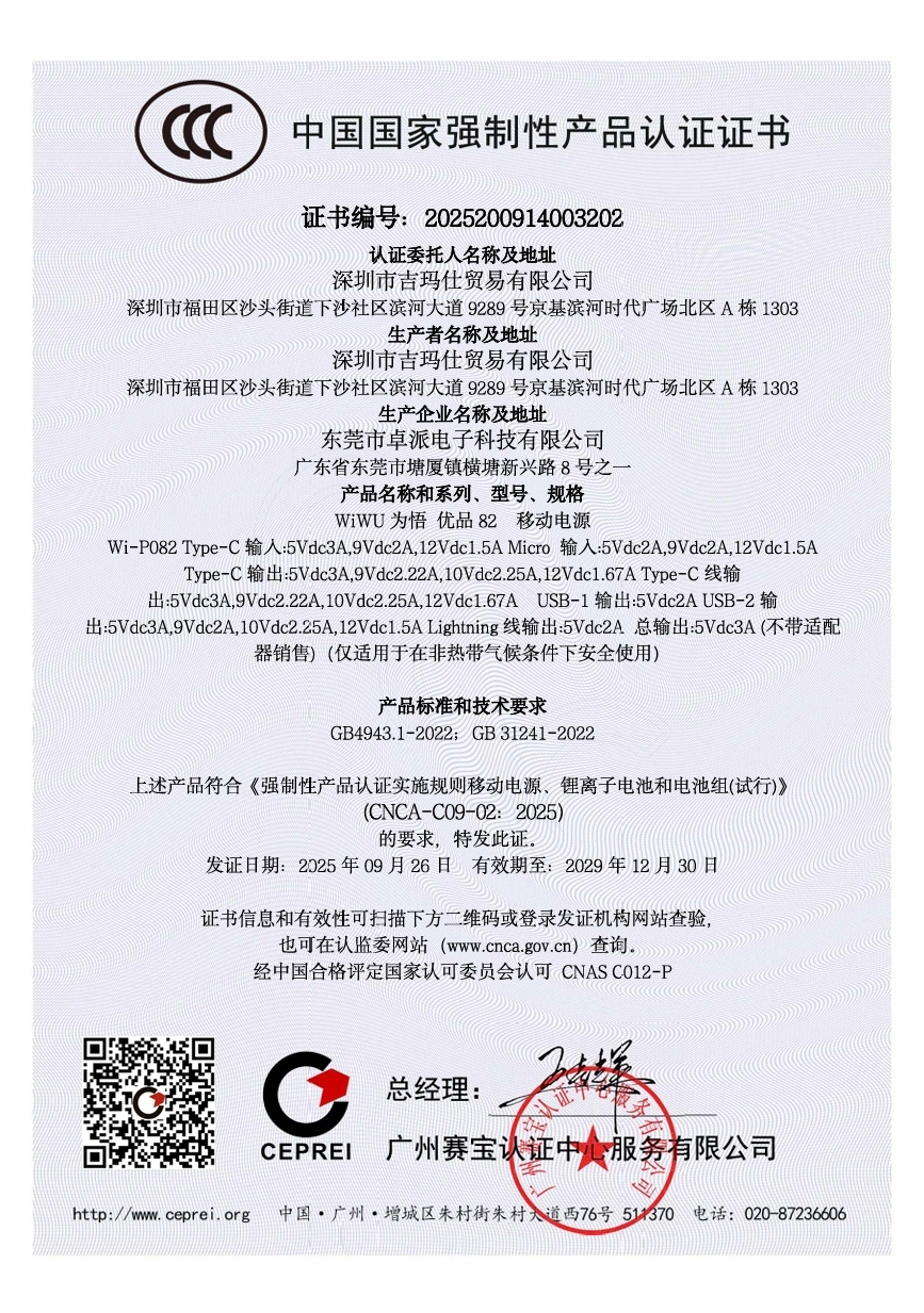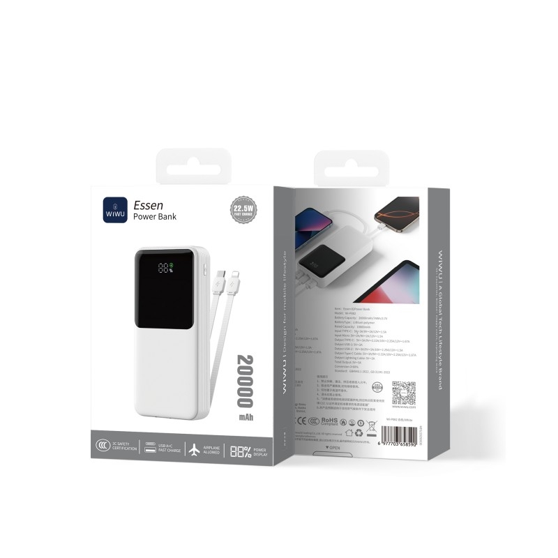 国家3C认证登机无忧品质保障;20000mAh大容量 支持长时间续航;具备过充、过放、短路等多重保护,确保使用安全;自带双接线+4接口,兼容多设备同时充电更高效;智能屏显电量一目了然