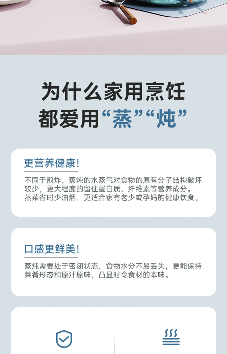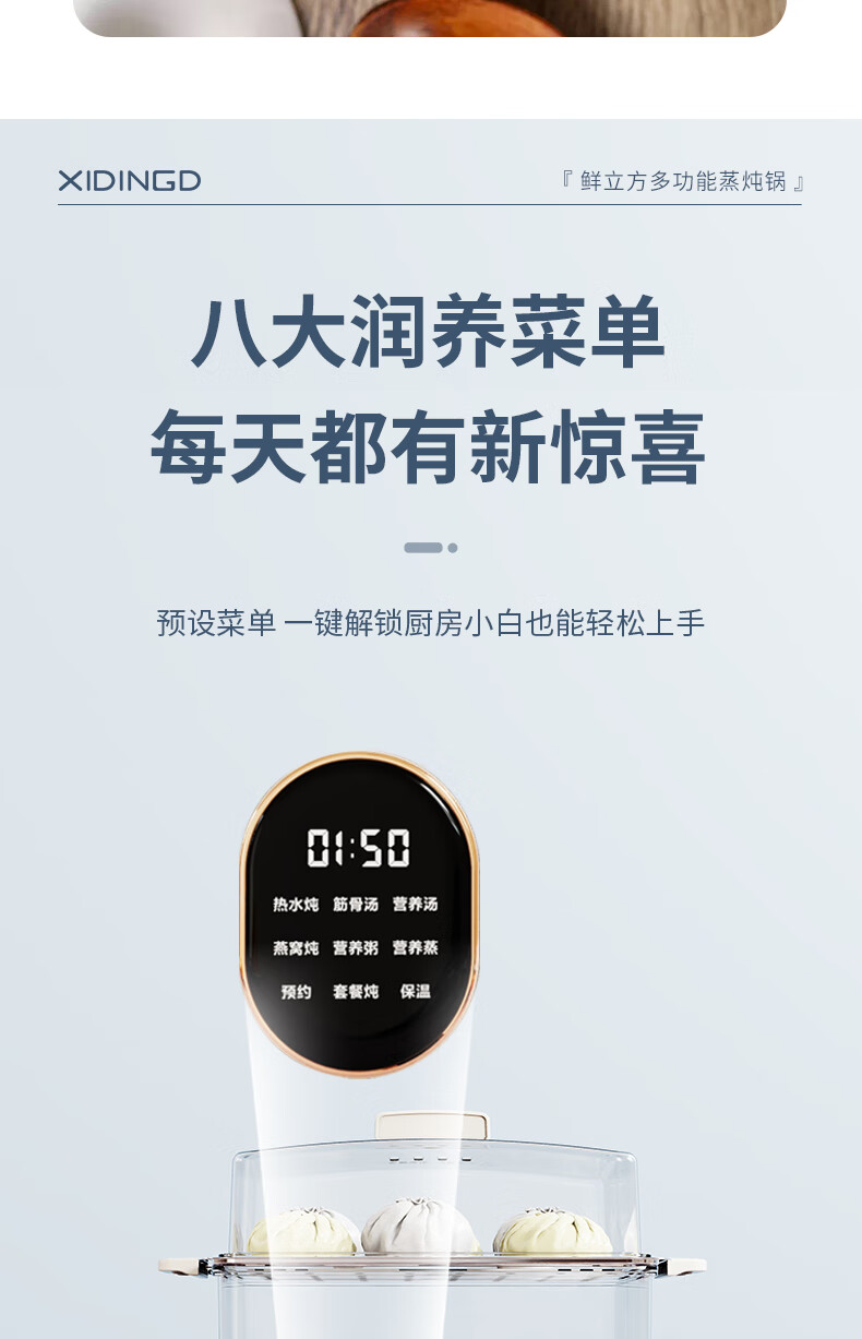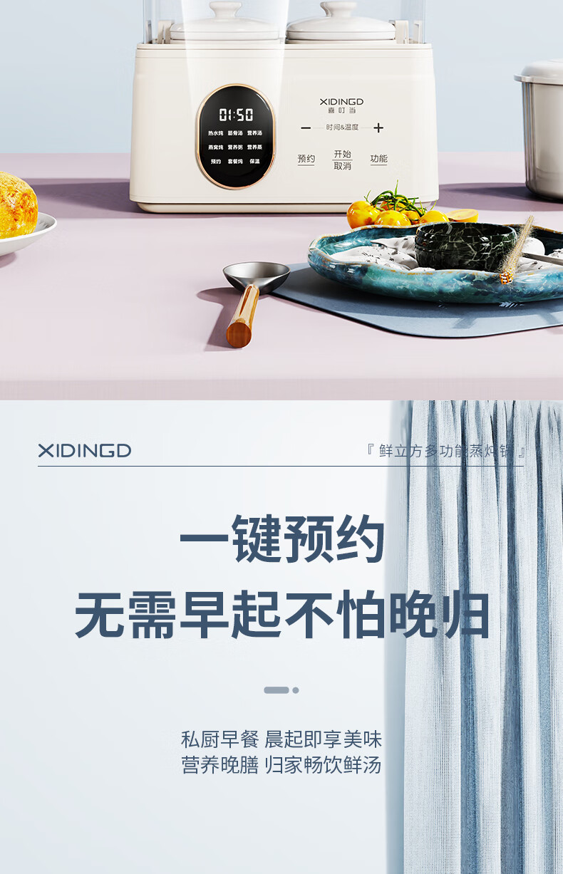 24小时预约功能;隔水柔炖,营养不流失;自动保温,更方便