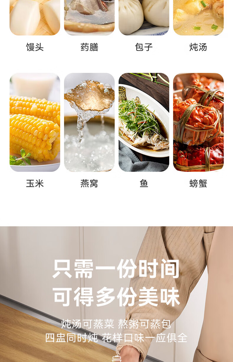 功能:燕窝,营养蒸,蒸蛋羹,炖,卤肉,煮白粥,煮杂粮粥