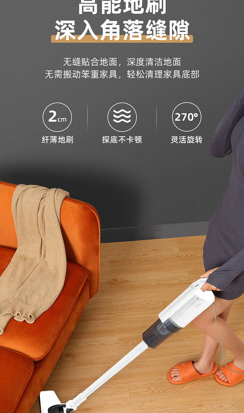 15000PA强劲吸力;海帕过滤无耗材;270°灵活刷头