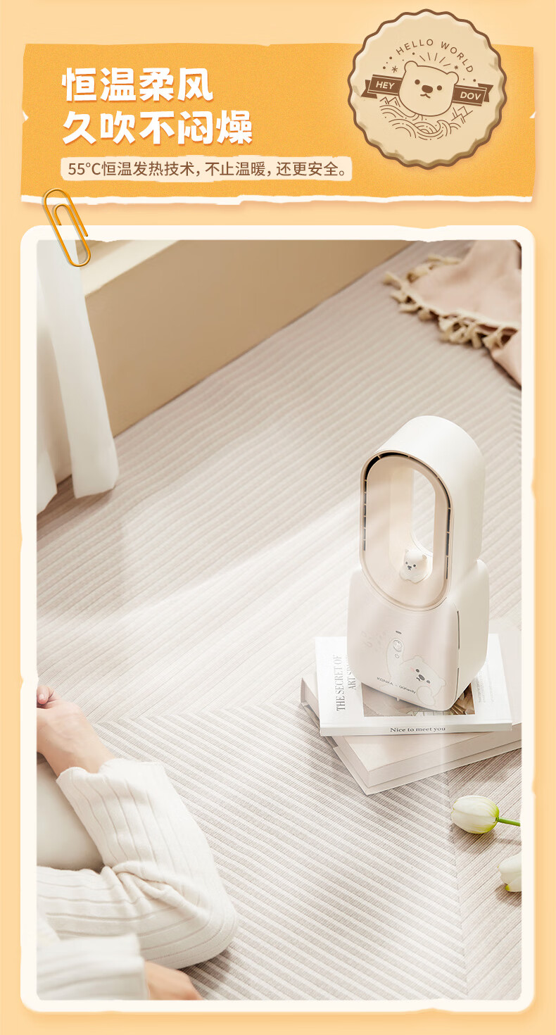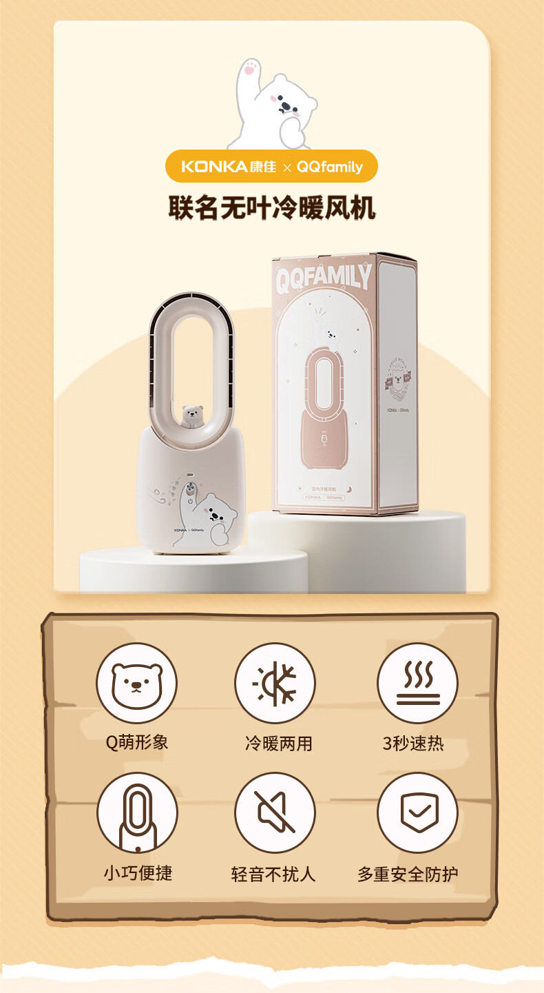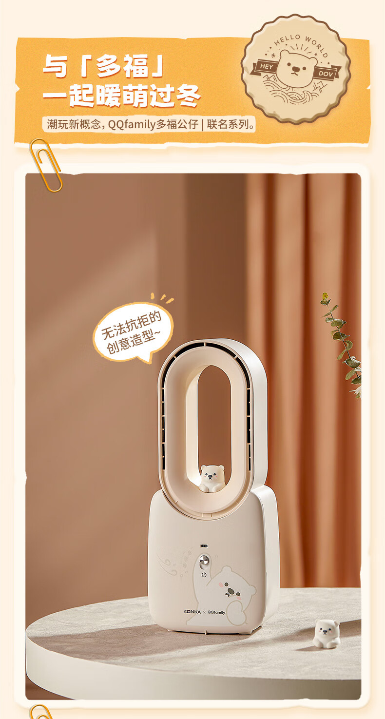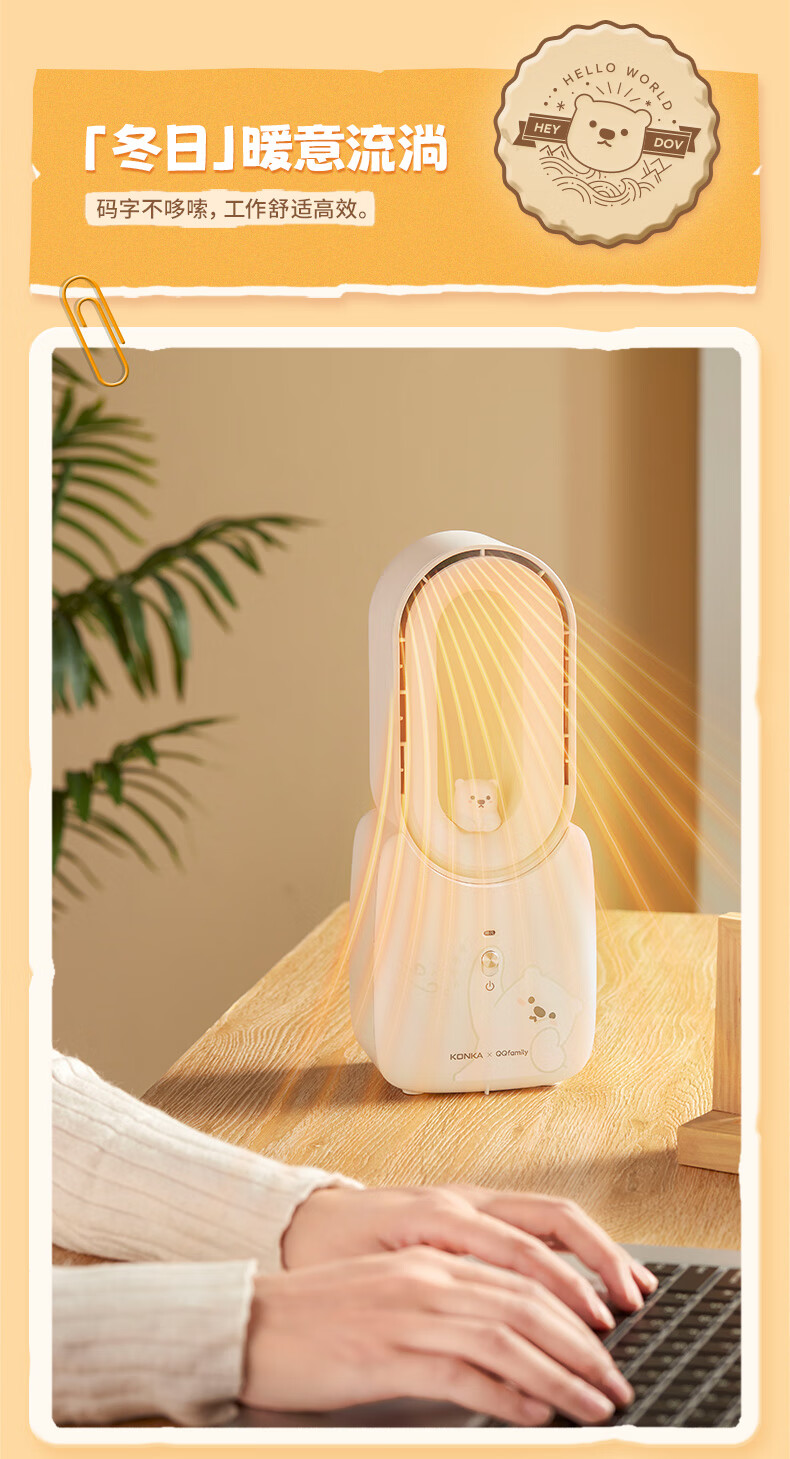 三秒速热;冷暖随心控,冬夏皆可使用;防倾倒开关,安全加热无负担