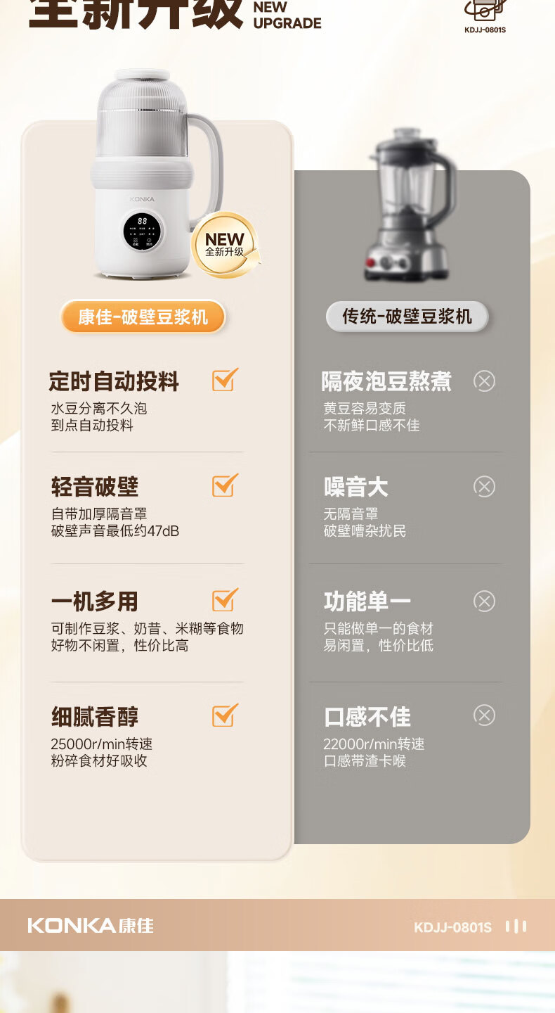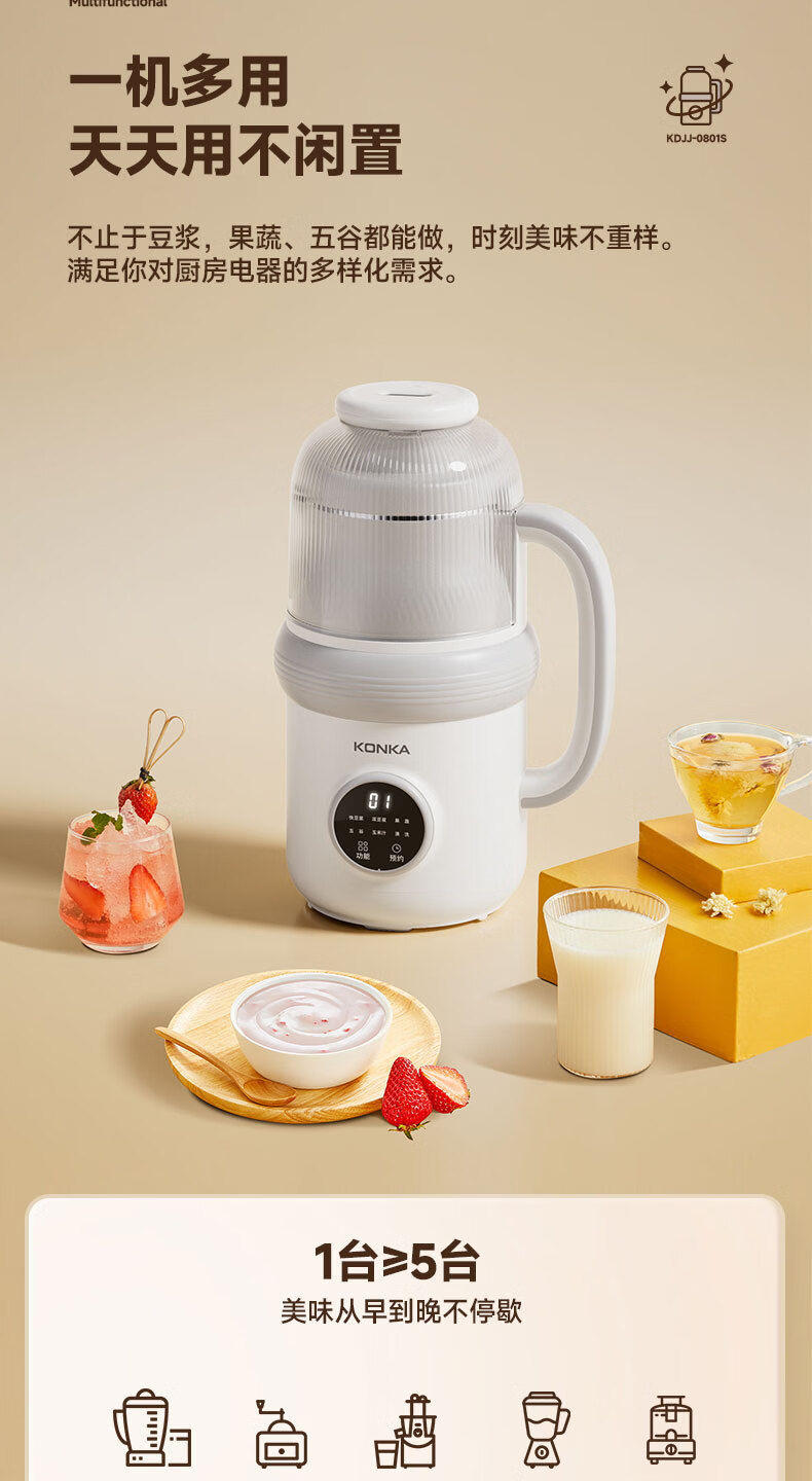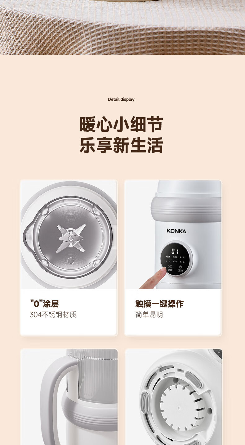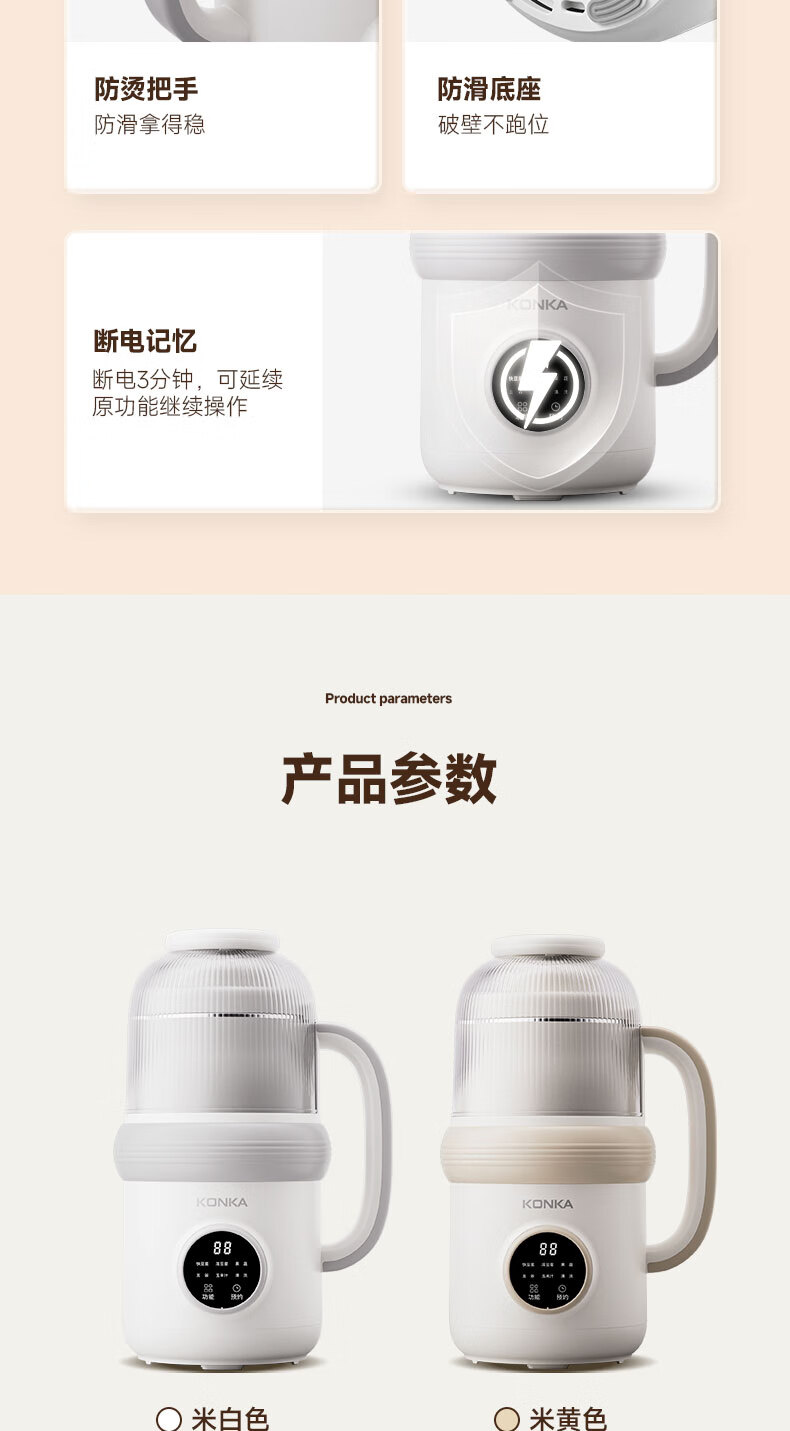 配置清单:额定功率:600W(加热)、280W(搅拌) 容量:冷饮0.8L、热饮0.6L