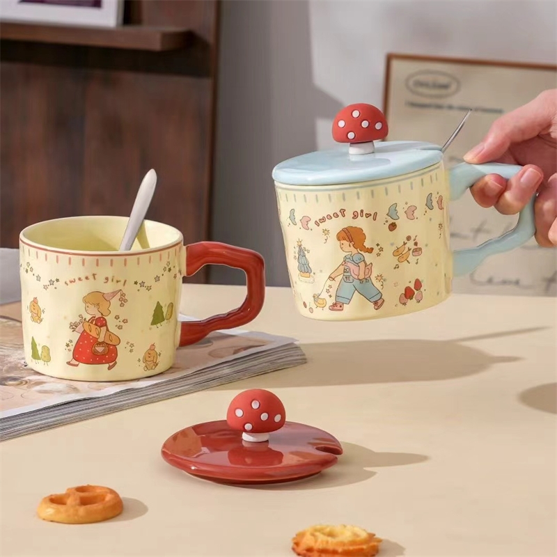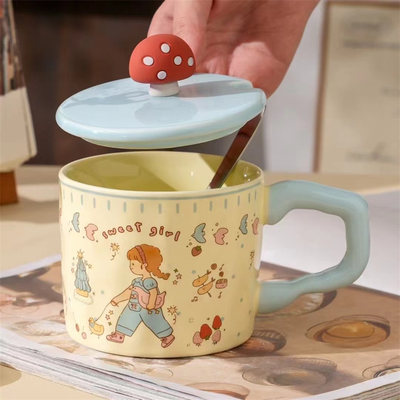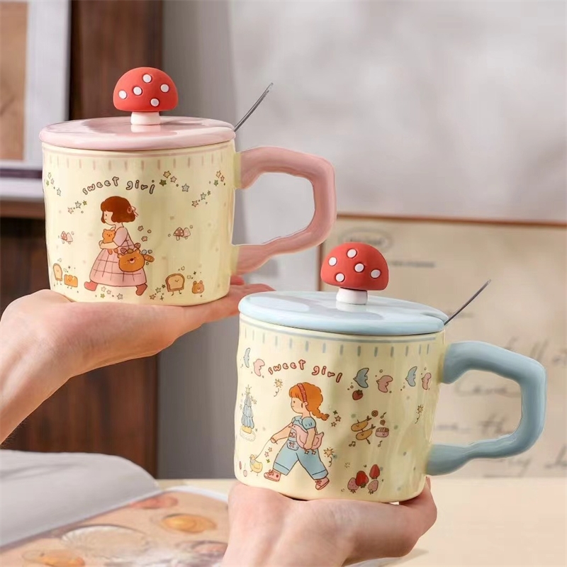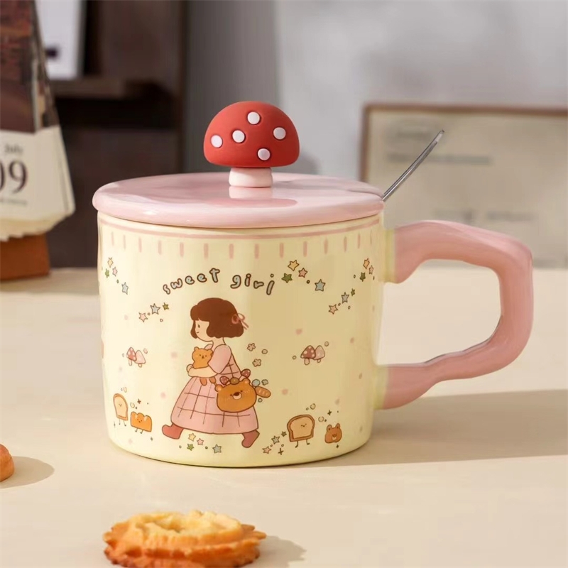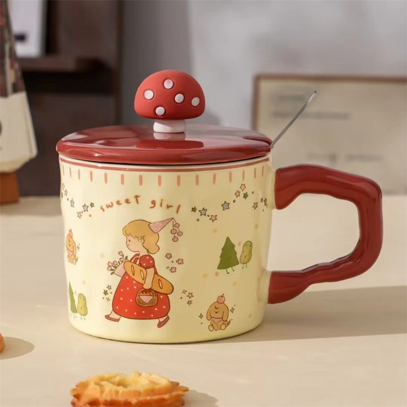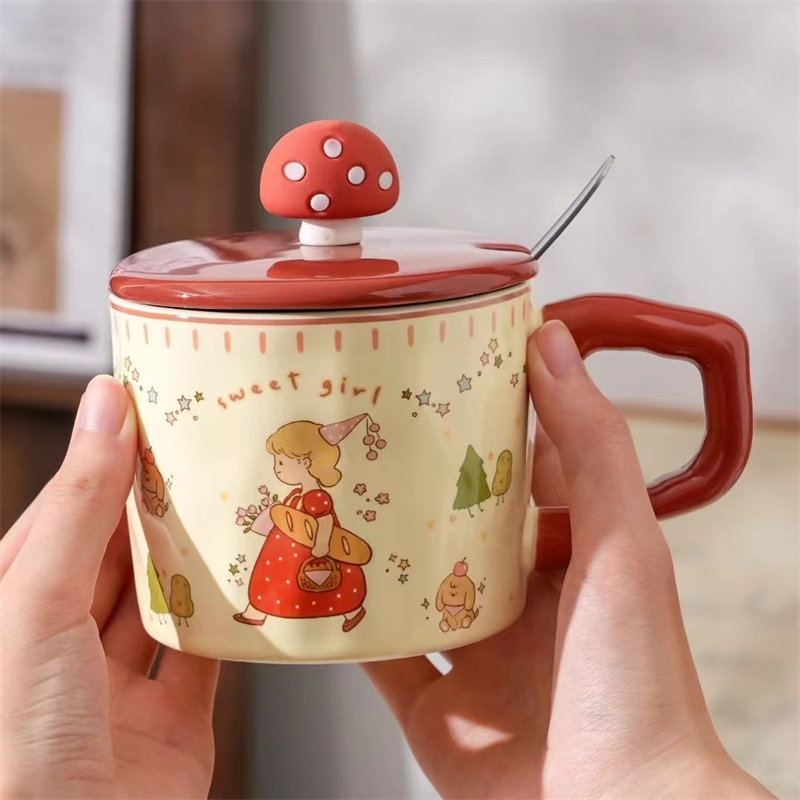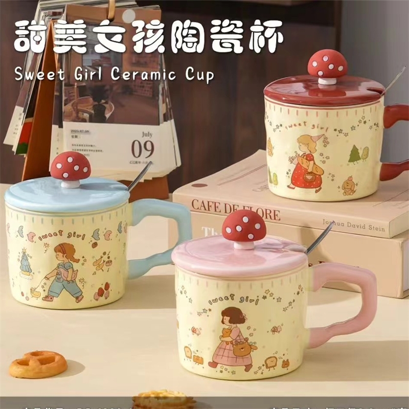 甜美女孩蘑菇屋陶瓷杯400ml6290