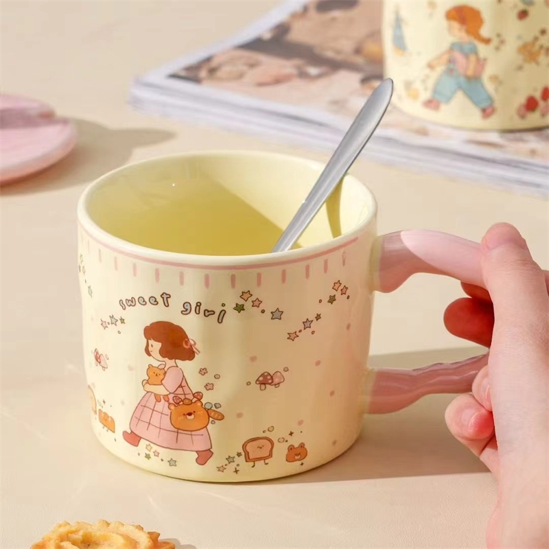 欧式风格田园小女孩;高温烧制,卫生、易清洁;含盖勺