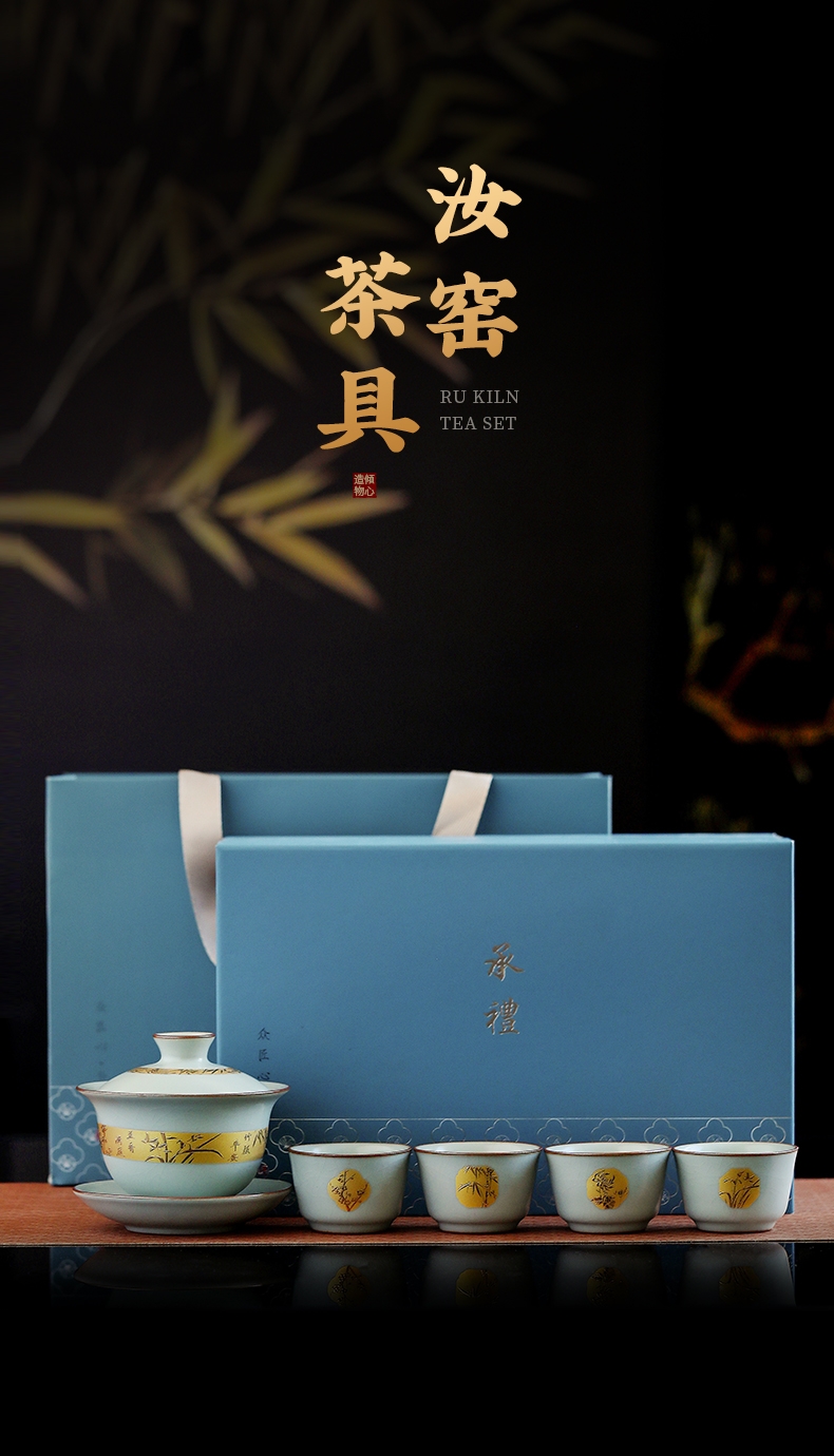 配置清单:盖碗*1,茶杯*4,礼盒*1,贺卡*1