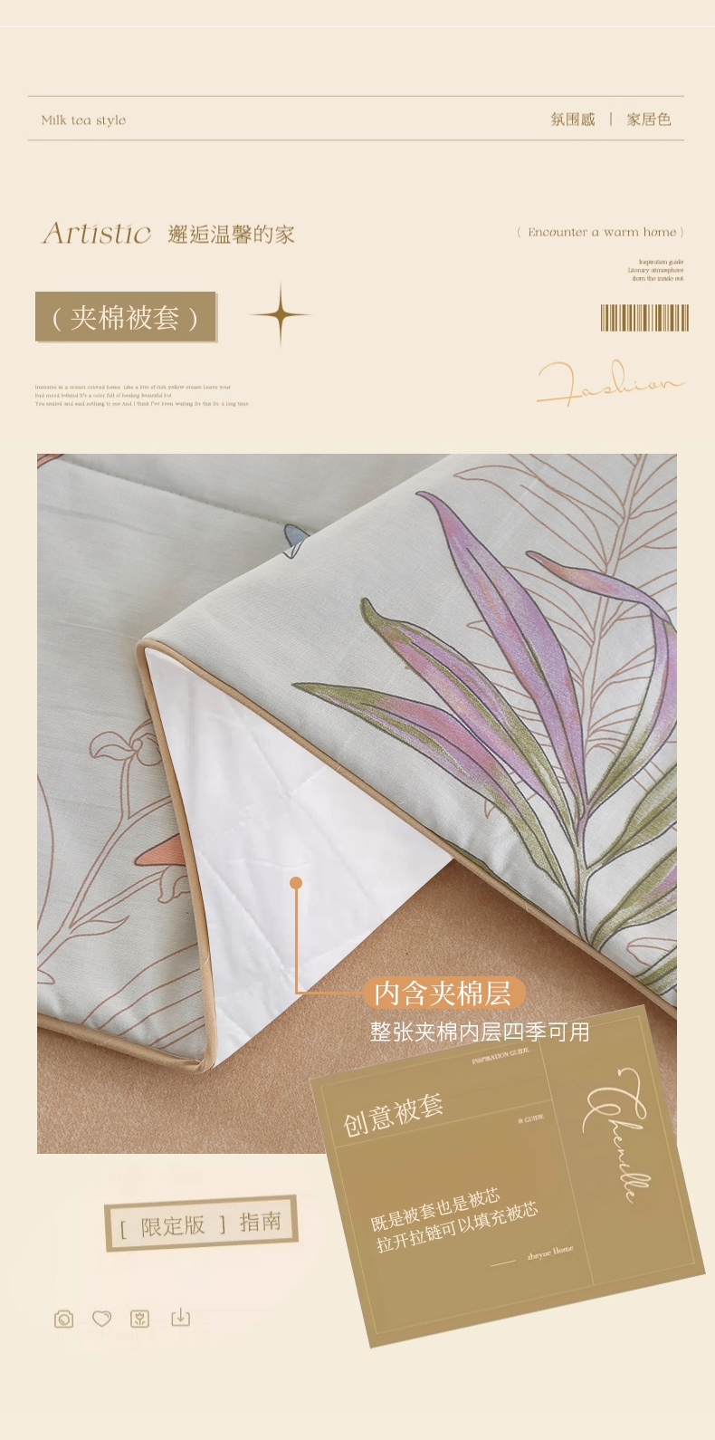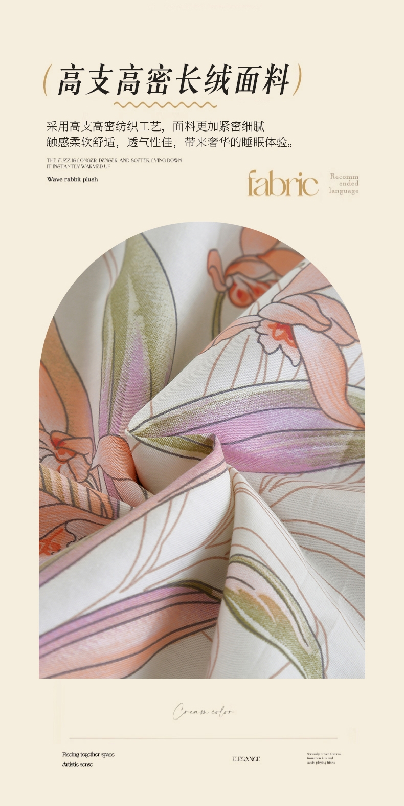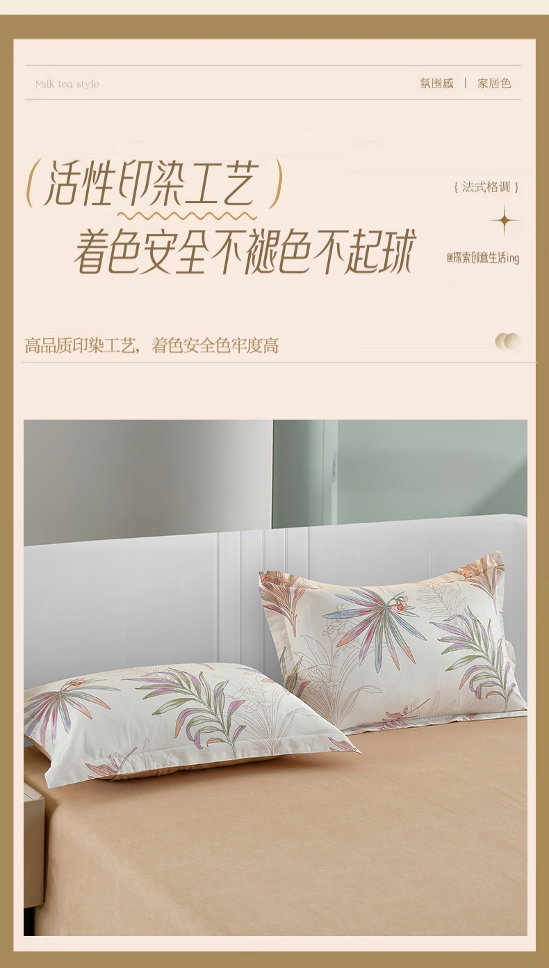 采用高支高密纺织工艺;面料更加紧密细腻,触感柔软舒适;活性印染:使用环保活性染料,色牢度高,不易褪色