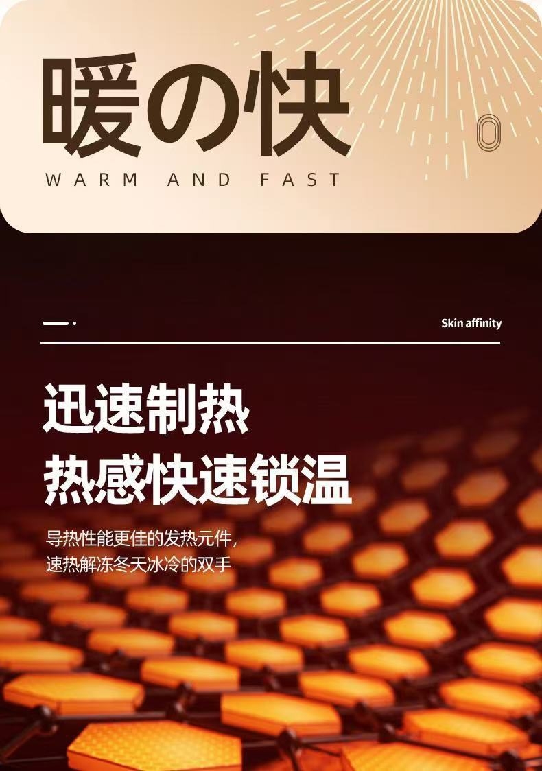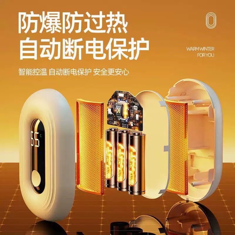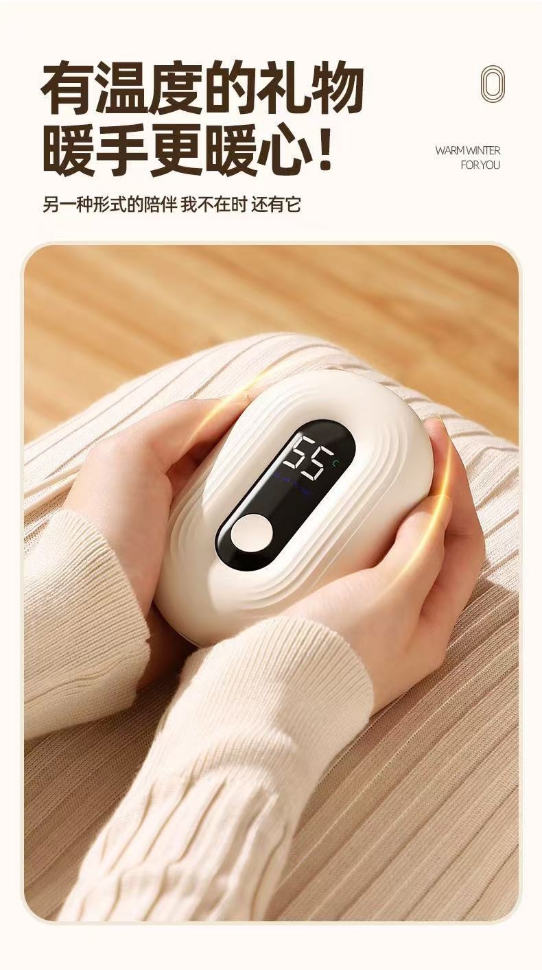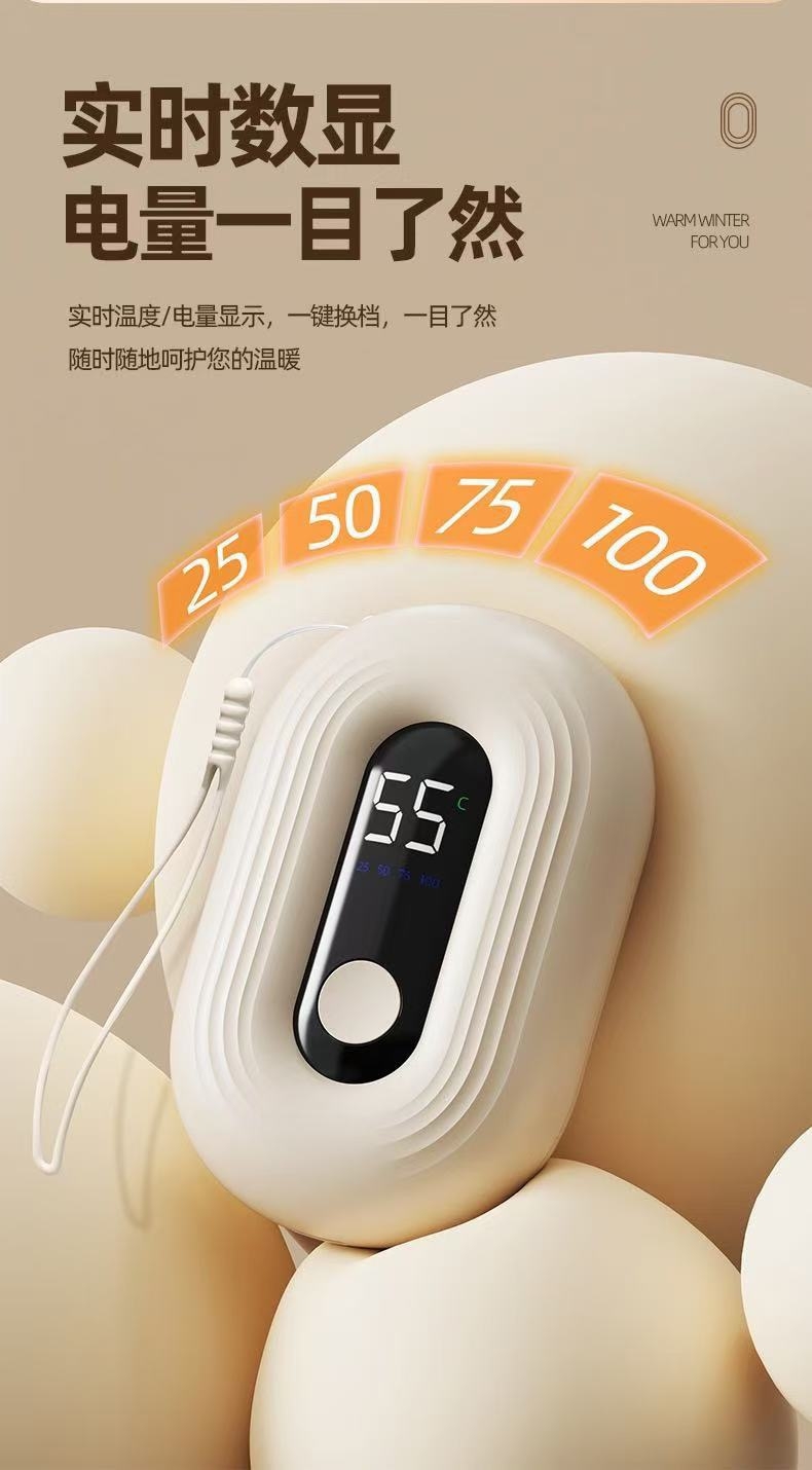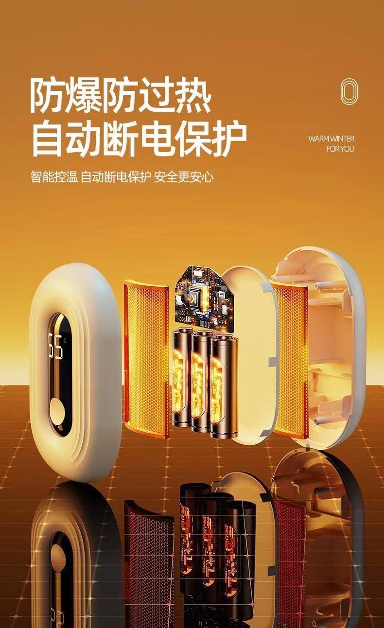 小巧便携随身掌握温暖;快速发热亲肤暖手三挡温度大屏显示屏;智能控温搭配自动过热保护元件